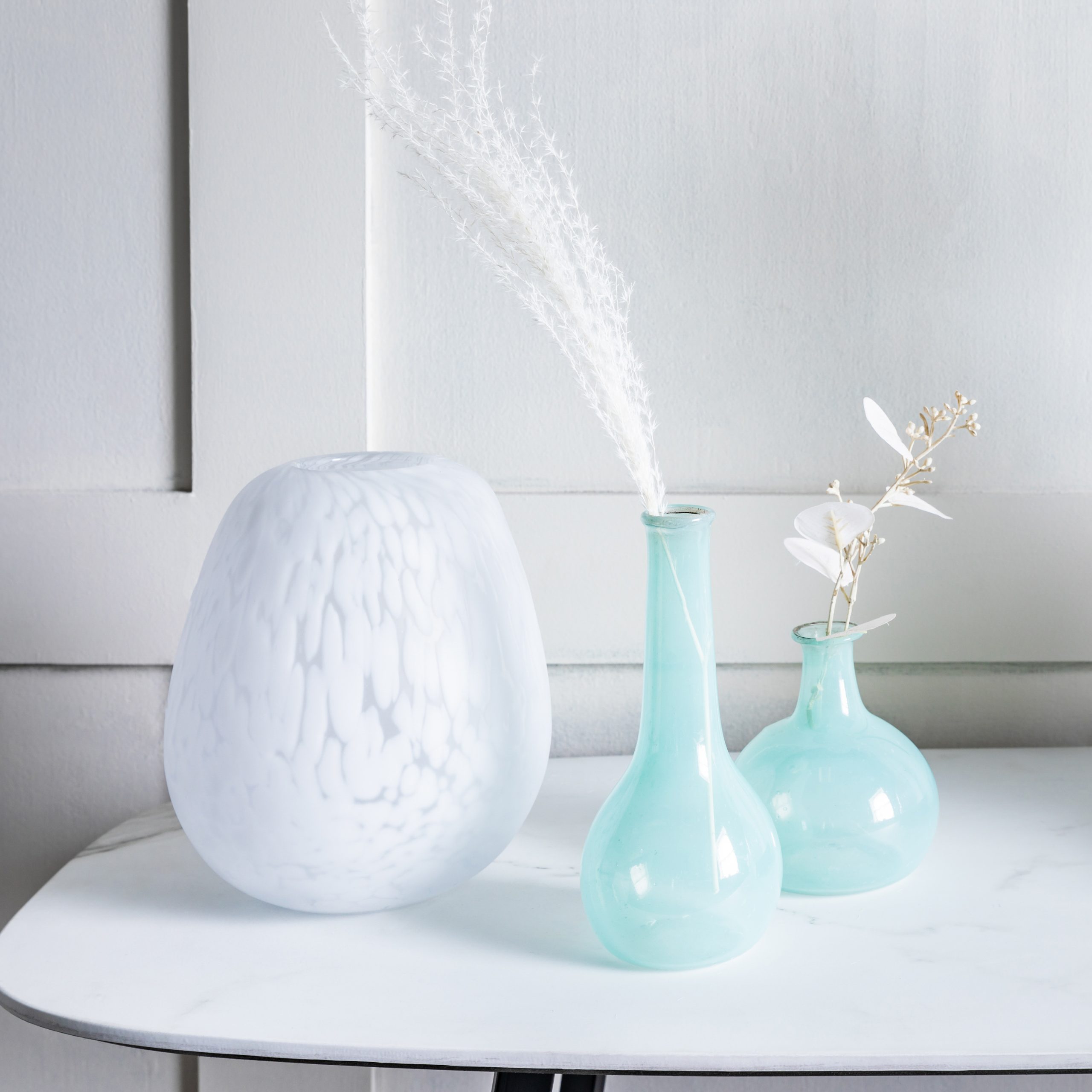 Gallery Direct Linni Vase Large Frosted White Speck With a smooth rounded organic shape, this vase is elegantly simple, letting the stunning pattern of the frosted white Murano-style glass really shine. Coordinating pieces are available.