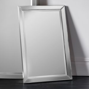 Versatile angled all bevelled mirror frame at a scale to suit any interior.