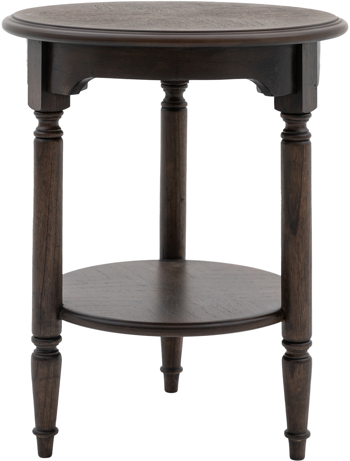 Gallery Direct Madison Side Table Offering a new traditional look, with a timeless, elegant style and modern touch, this stunning side table features exquisite dark salvaged coffee coloured Mindy wood solids & veneers. The book matched marquetry detail and turned spindle legs create a stunningly elegant side table.