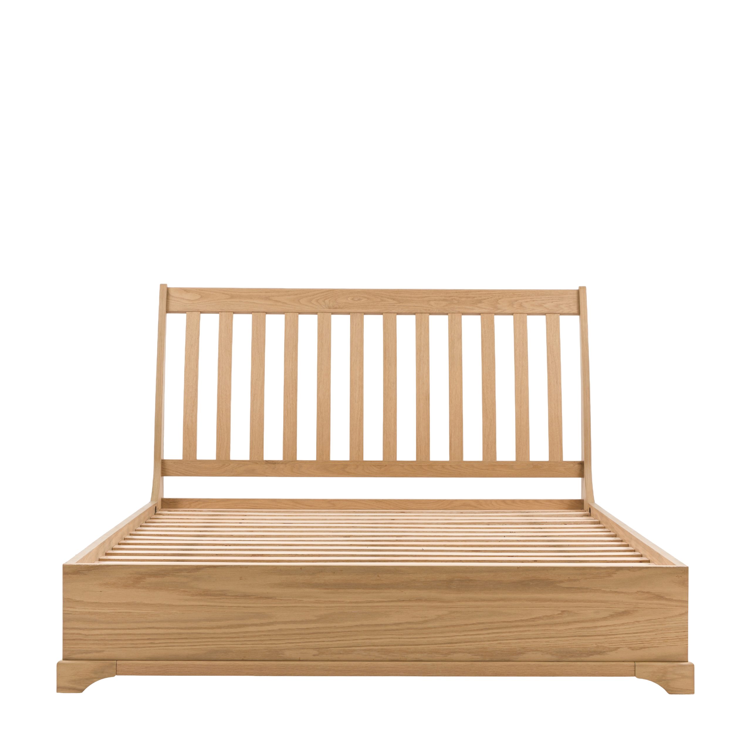 Gallery Direct Malvern 4’6 Bed Create the perfect sleep sanctuary with this beautifully crafted wooden double bed frame. The elegant, clean lines and beautiful natural wood finish, crafted with premium solid oak and veneers, exudes timeless style, seamlessly blending into both modern and traditional bedrooms. The supportive slatted headboard offers a comfortable backrest, designed for comfort and lasting beauty.