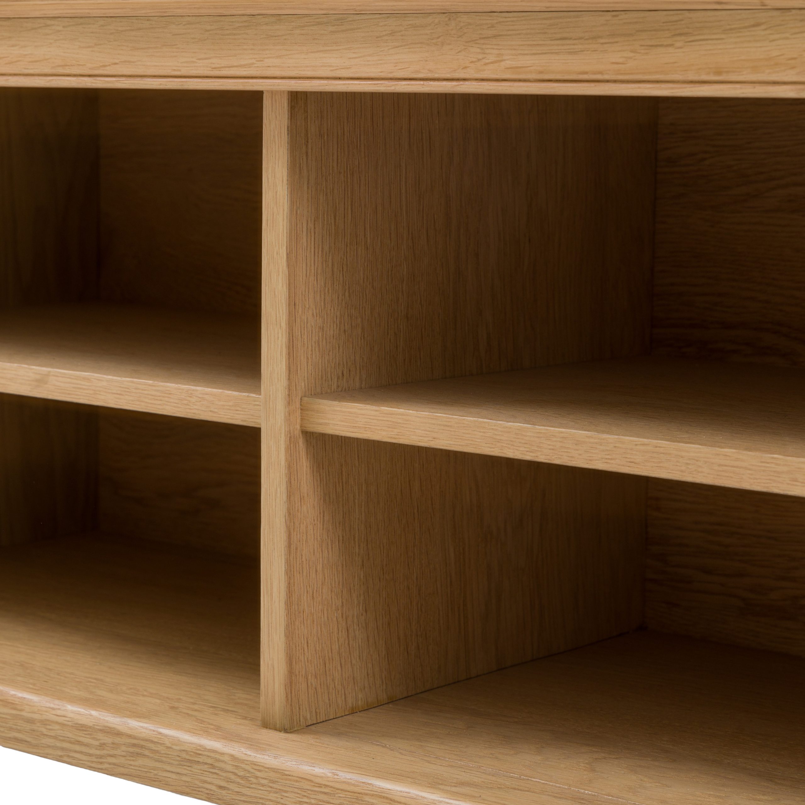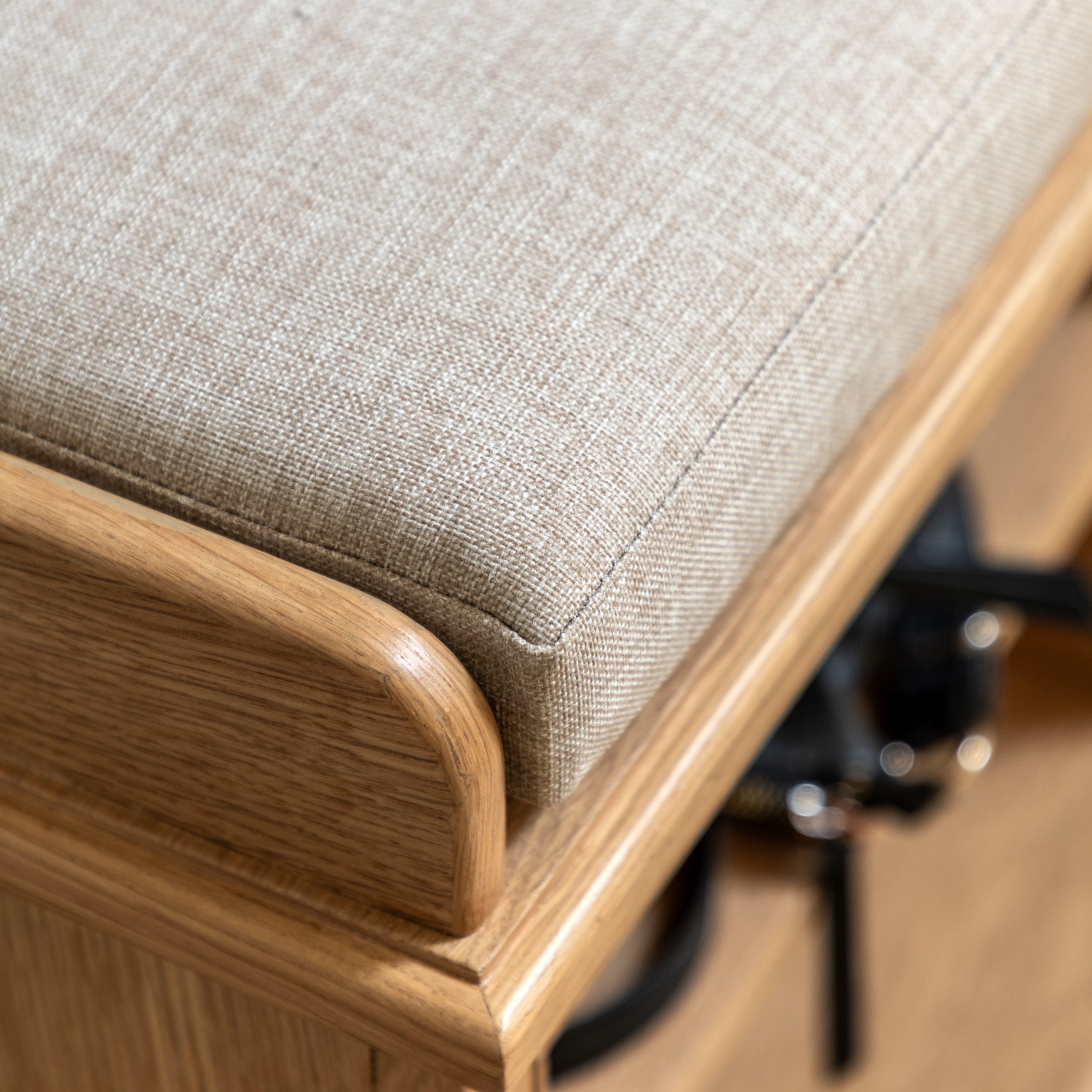 Welcome functionality and style into your home with this versatile hall bench. Perfect for your entryway, the bench features a comfy, natural toned upholstered cushion for seating and six open cubbies, ideal for organising shoes, bags, or other essentials. The wooden frame is crafted in solid oak & veneers, full of subtle grain detail and natural warmth, adding a touch of natural charm to any space.
