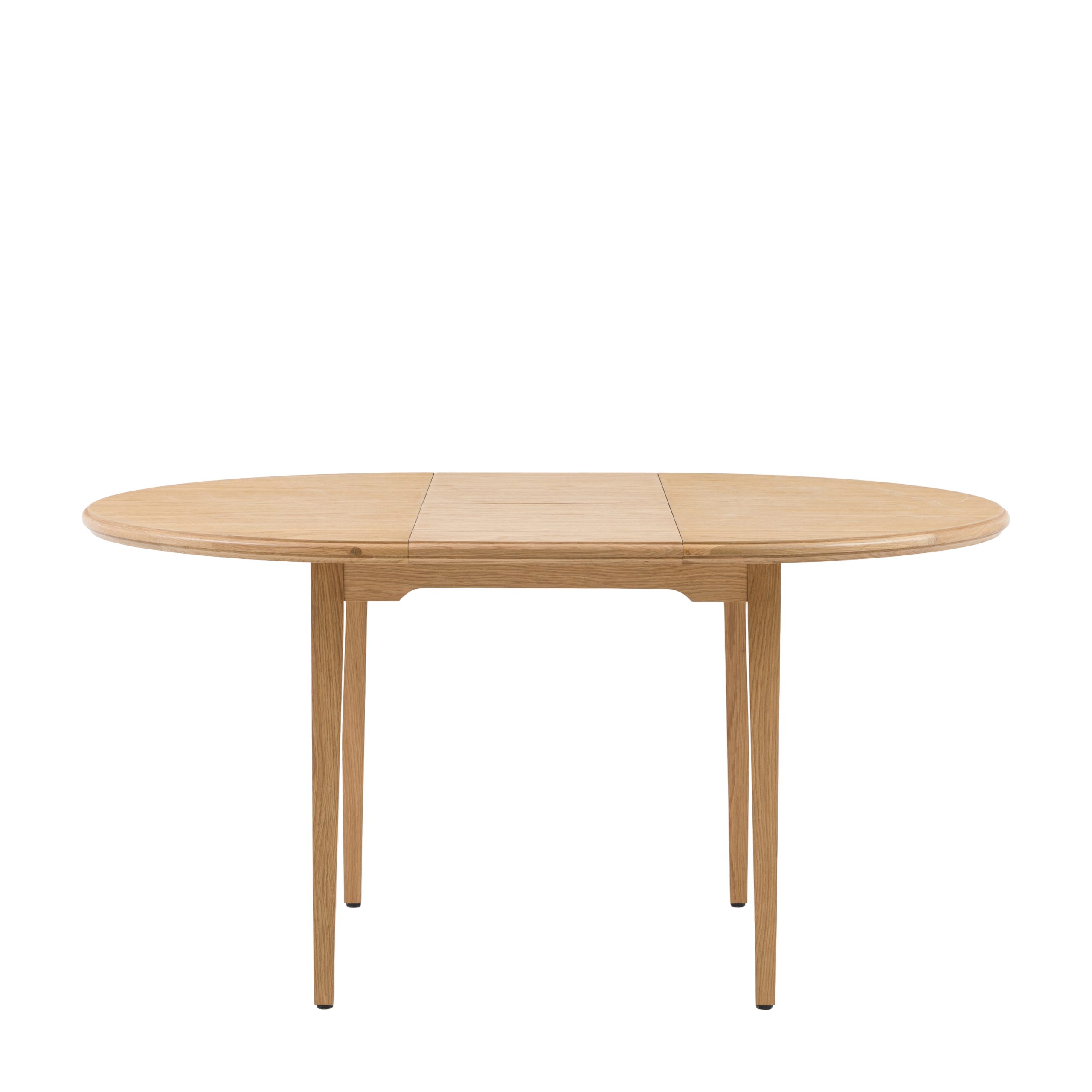 Create a welcoming dining experience with this charming round dining table. The warm oak solids & veneers are full of subtle grain detail, adding classic elegance and bringing an inviting style to any kitchen or dining area. With a clever extendable feature, the table gracefully transitions from intimate family meals to accommodating more guests, seating 4 to 6 people. This table offers both beauty and adaptable functionality.