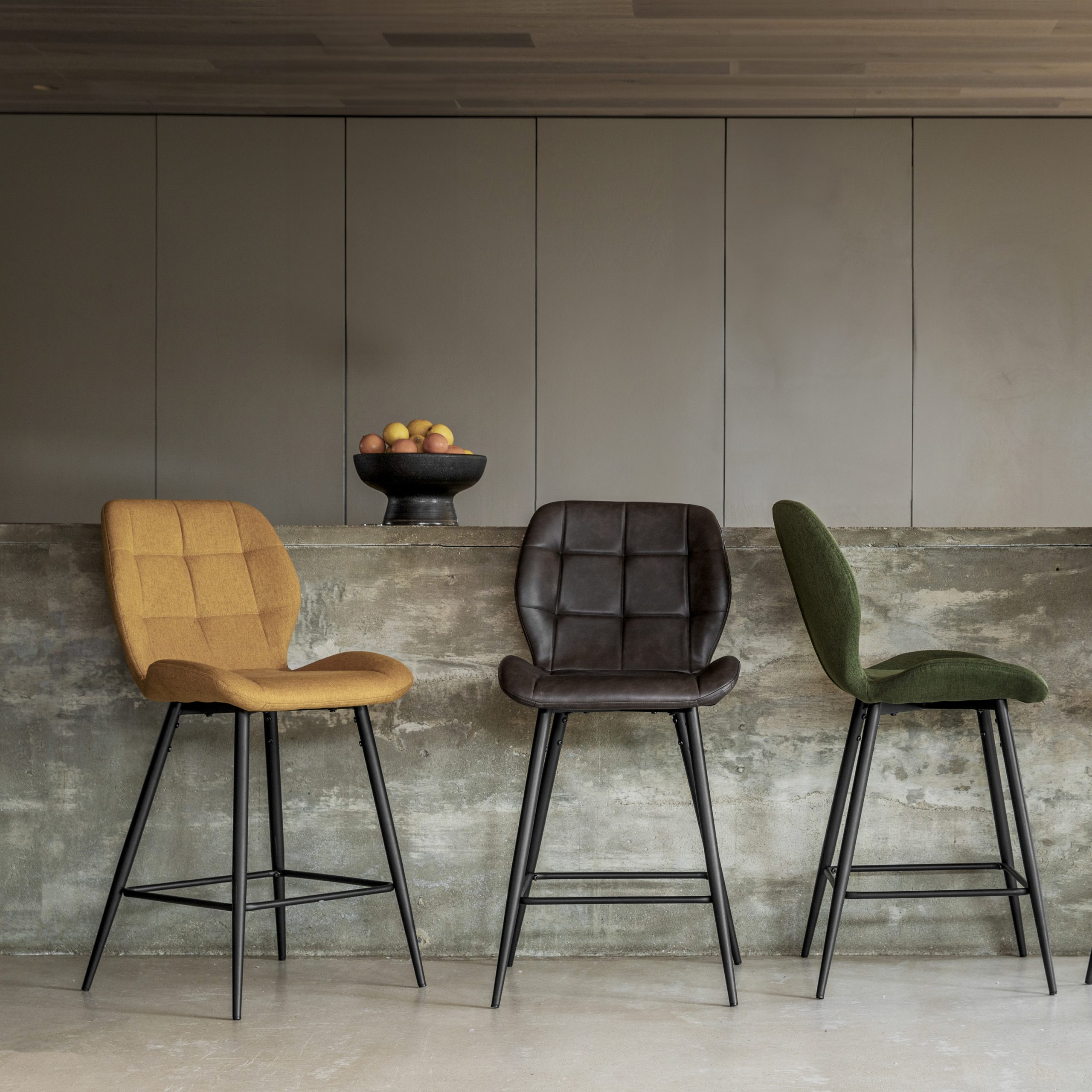 Gallery Direct Manford Stool Saffron (Set of 2) These mid-century inspired modern stools will make a stand out addition to your room. The shaped back and curved seat are upholstered in saffron colured fabric with extra stitch detailing, paired with metal legs, for a contemporary look. Also available in other colours, and matching chairs available.