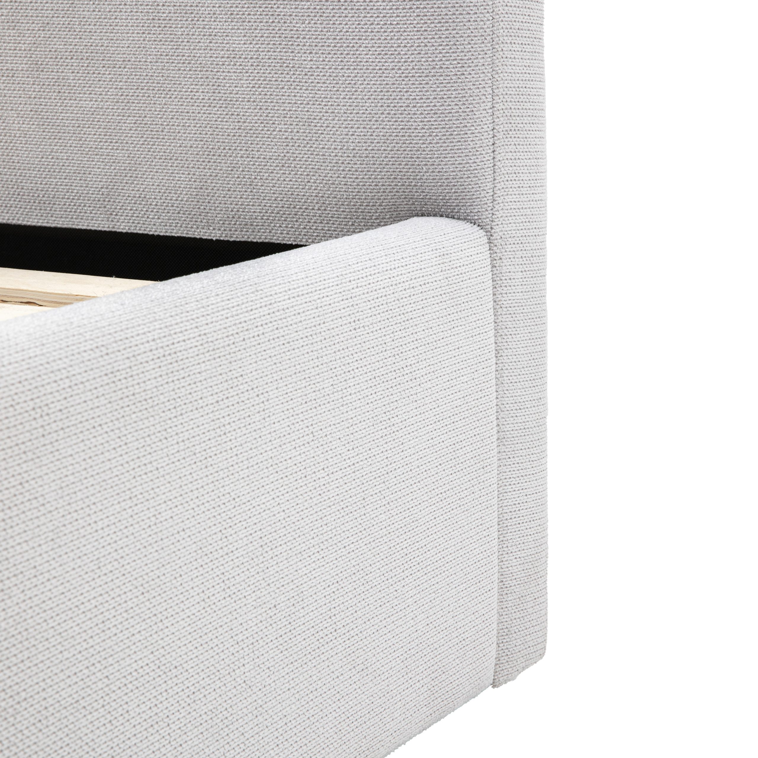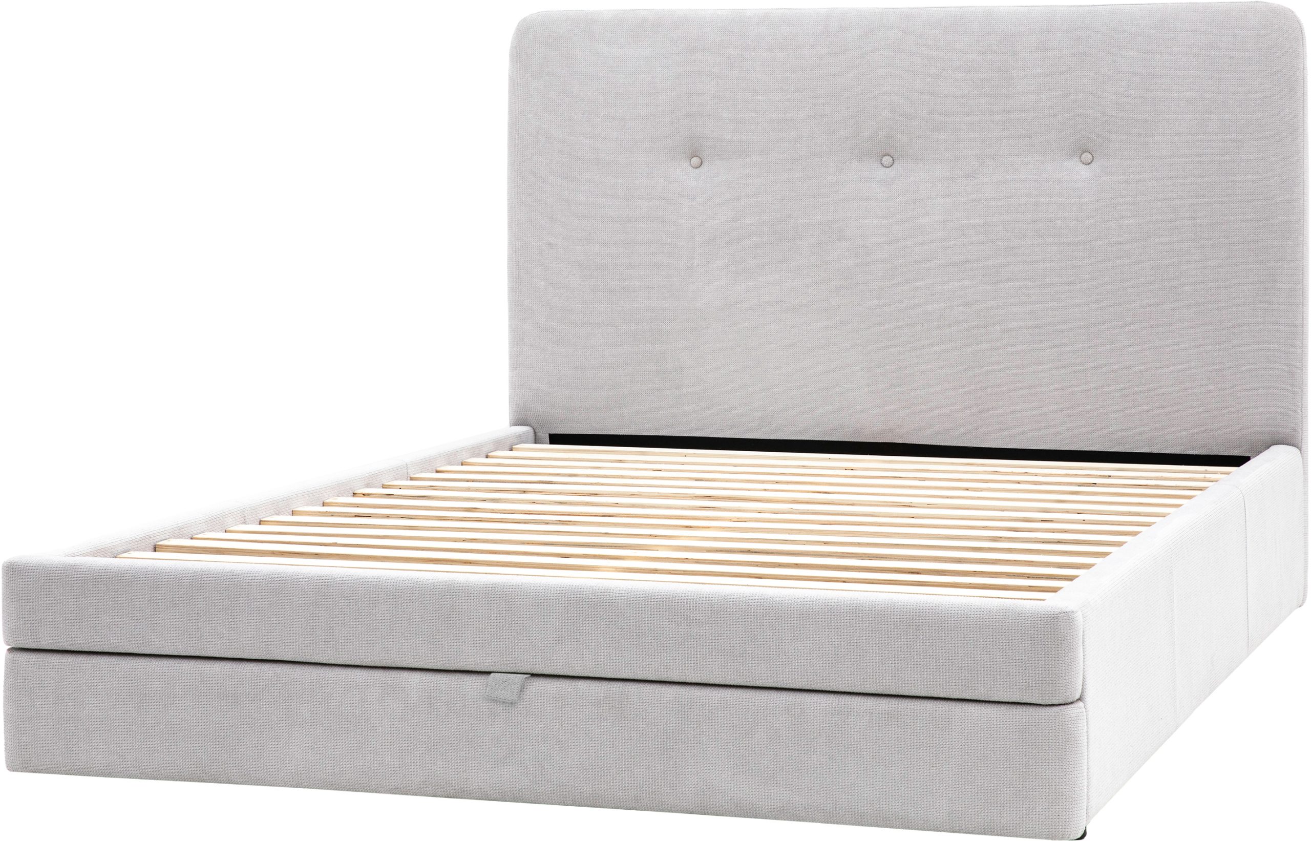 With its simple classy design and lovely taupe fabric, this beautiful kingsize bedstead would suit a wide range of interiors. The headboard has softly rounded corners and button detailing to give elegant style, and the base features two drawers to give storage space for added practicality. Also available in green fabric and as a double bedstead.