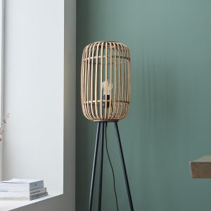 A simple and stylish floor light inspired by nature, sustainably sourced light bamboo cage, creating a soft warm light. Finished with matt black paint detailing.