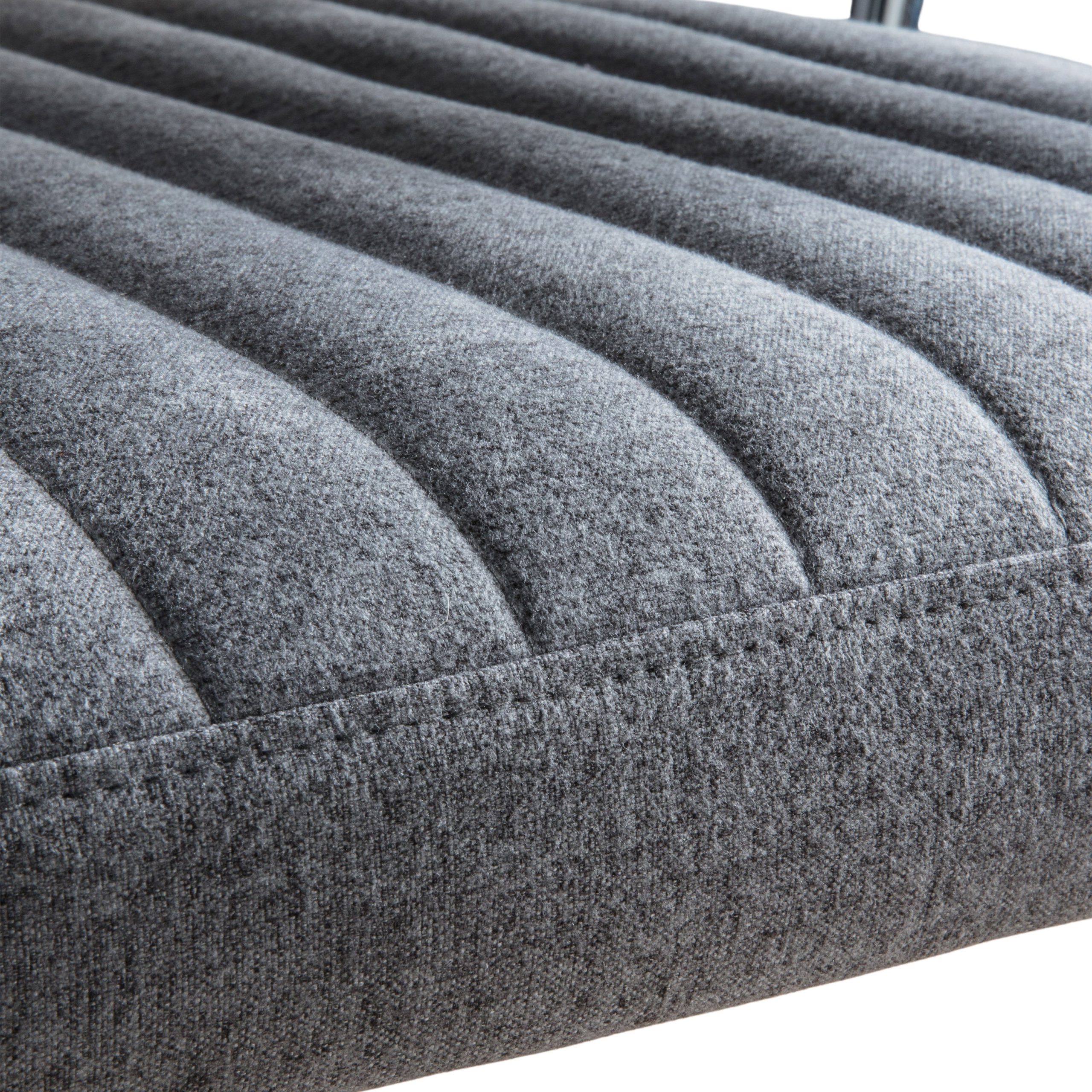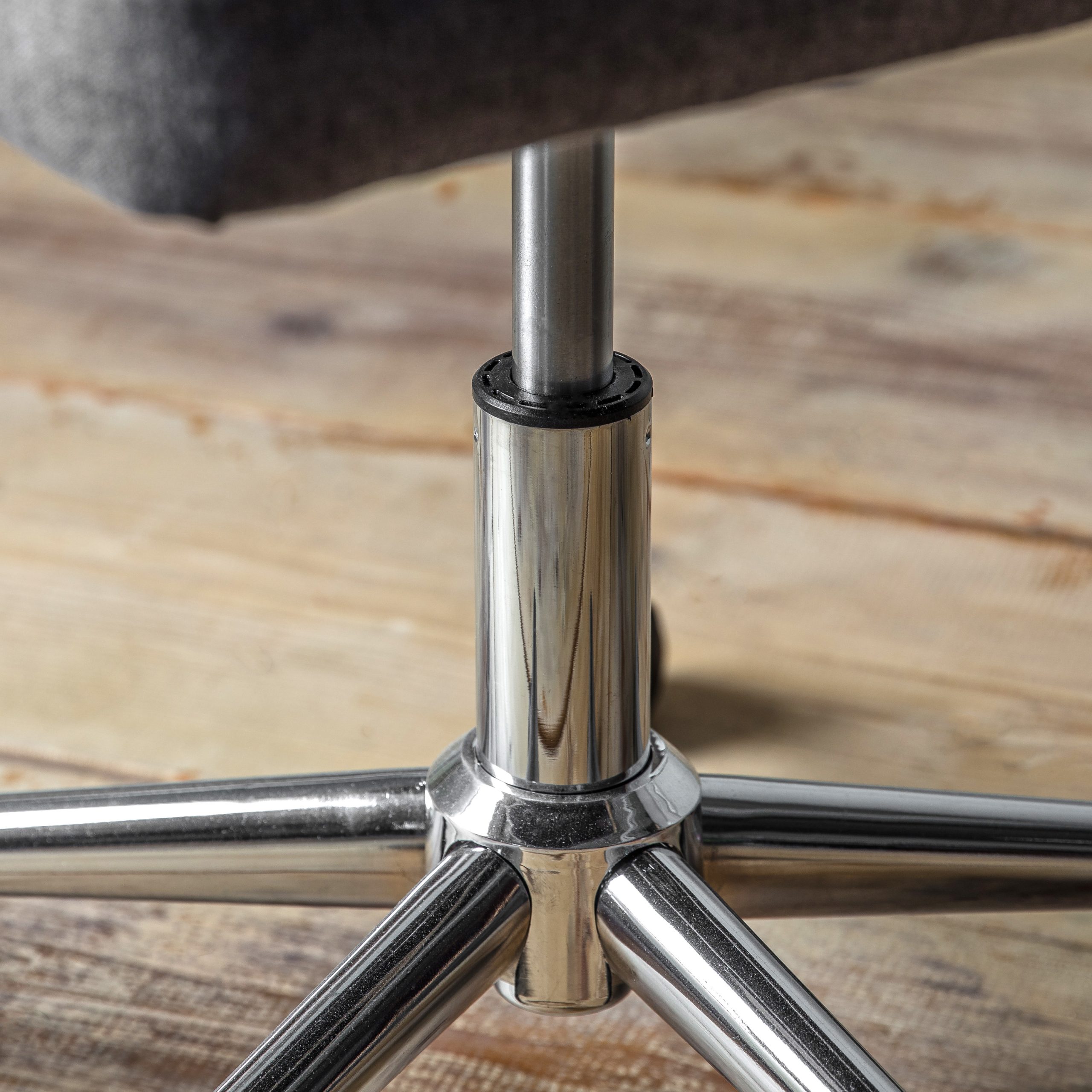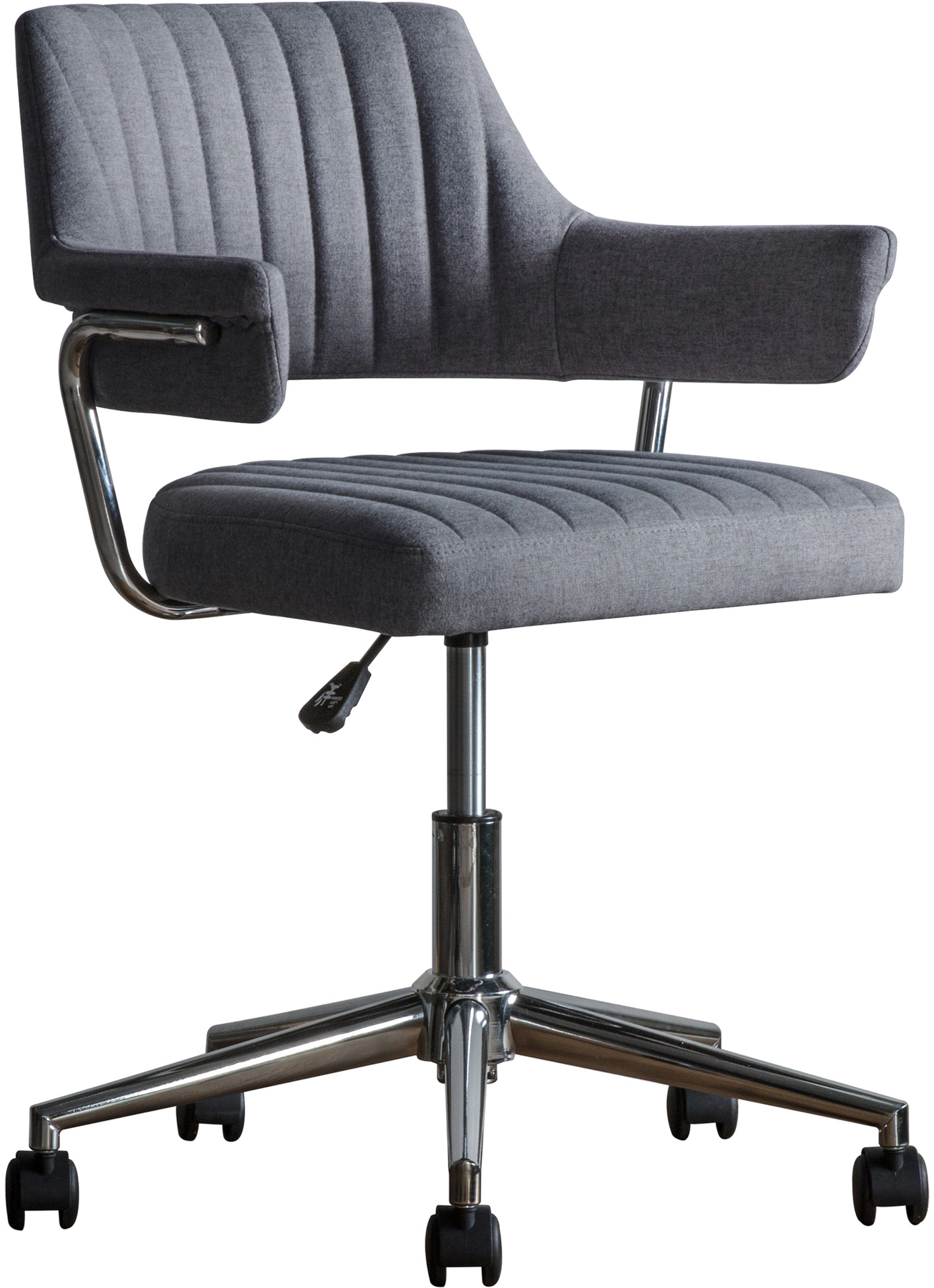 This modern swivel chair offers contemporary style to add a unique on-trend look to a home office. The padded seat and back are upholstered in a lovely charcoal grey fabric with stitch detailing, and for practicality, the chair is on castors for easy manoeuvrability and has gas lift seat height adjustment. Also available in lighter grey fabric.