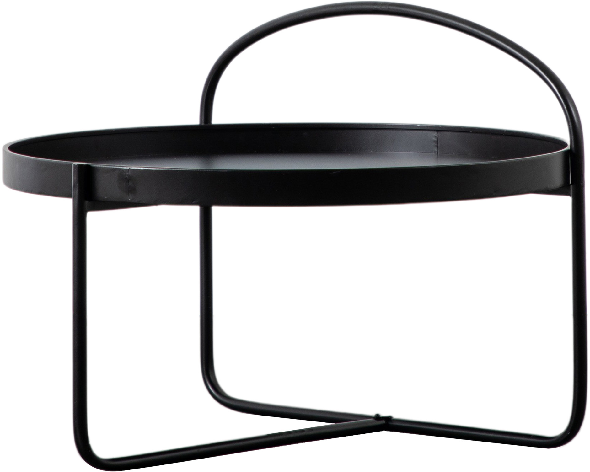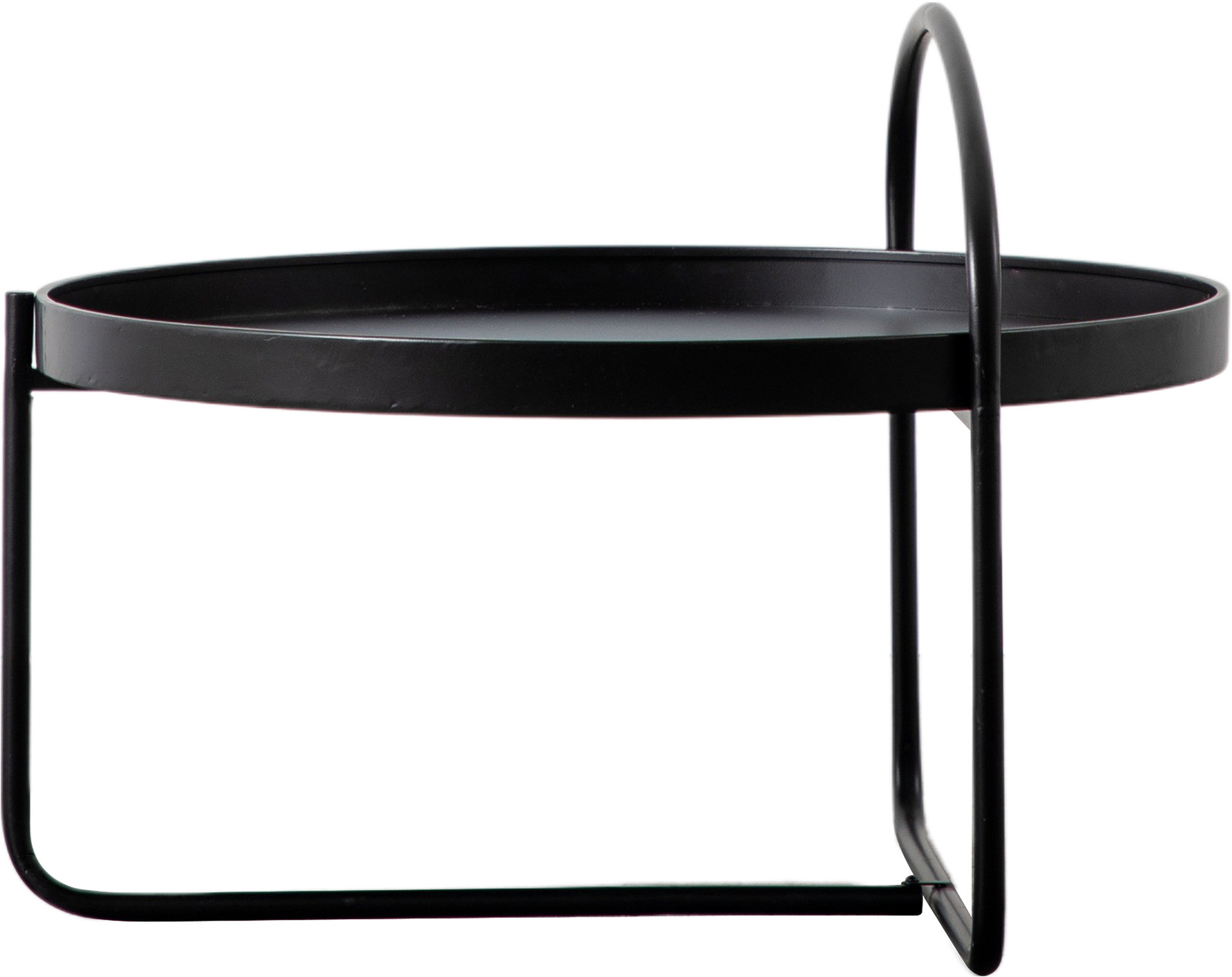 Gallery Direct Melbury Coffee Table Black The stylish design of this unusual coffee table features a tray-style top, which lifts off for added practicality, and a continuation of one section of the base, up and over the table to create a handle effect. Both the tray top and base are made from metal with a painted finish. A matching side table is available. Both are offered in a choice of six colours, from eye-catching tones, which are ideal for adding a pop of colour to room, to softer colours, for those who prefer a more subtle look.