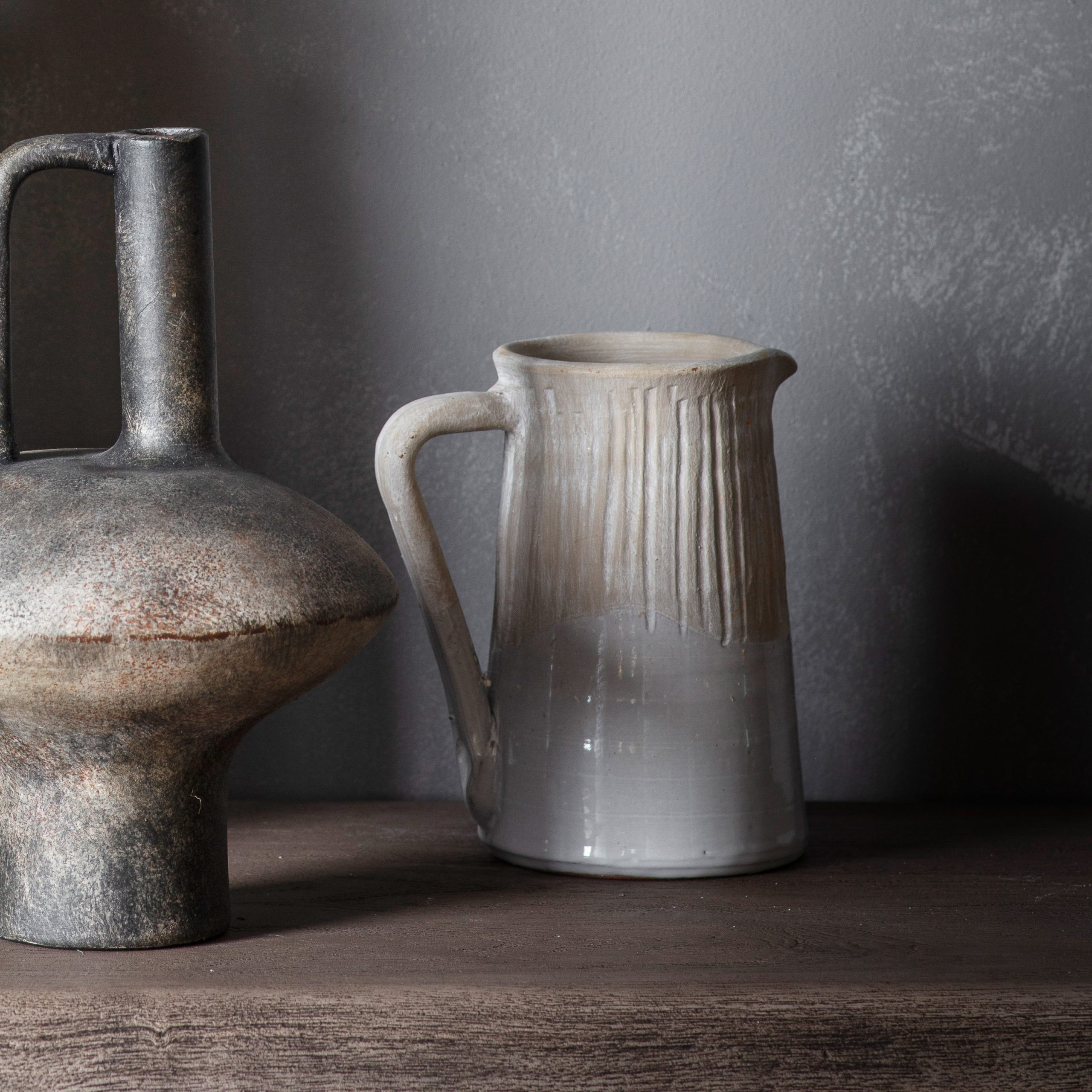 This lovely jug offers an interesting design, with the rough textured top part complemented by the glossy glazed bottom section. A larger version is also available.