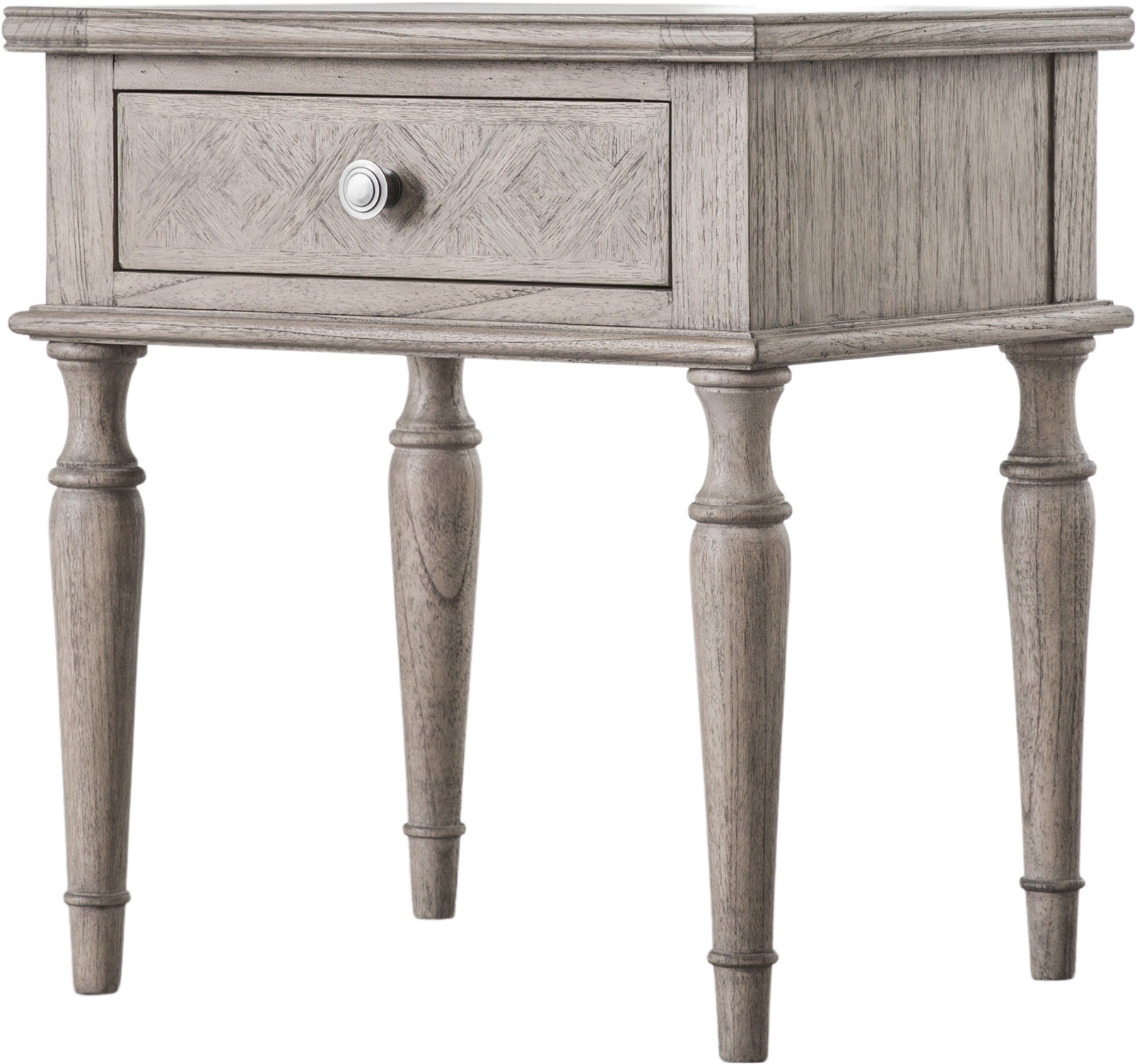 With a nod towards the french colonial style this 1 Drawer side table is made from mindy ash and features parquet inlaid vaneer work in a lightly brushed natural finish.