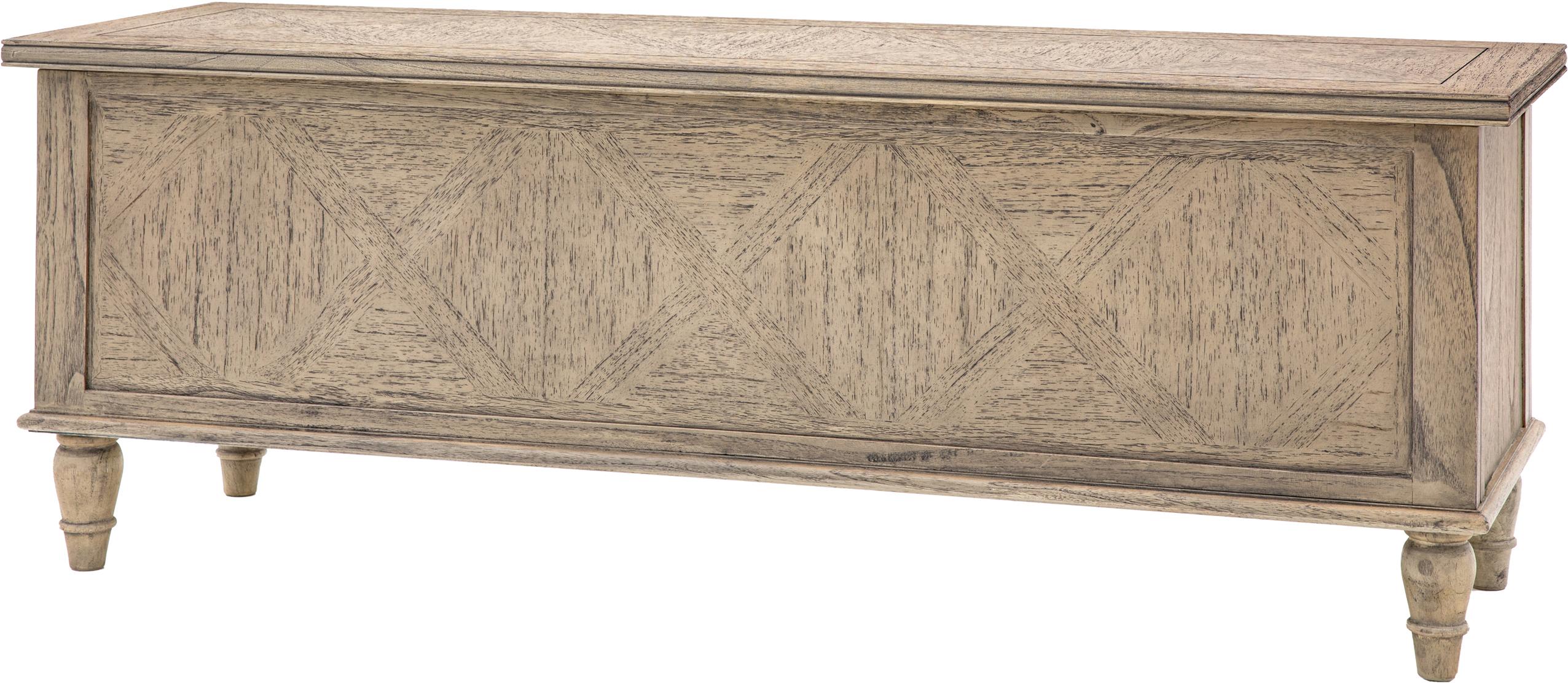 This hall bench/chest offers a practical storage solution. It is ideal for use in a hallway, living room or bedroom. The stylish design features the signature parquet-style design on the front with turned legs, whilst the hinged top offers handy additional storage space inside.
