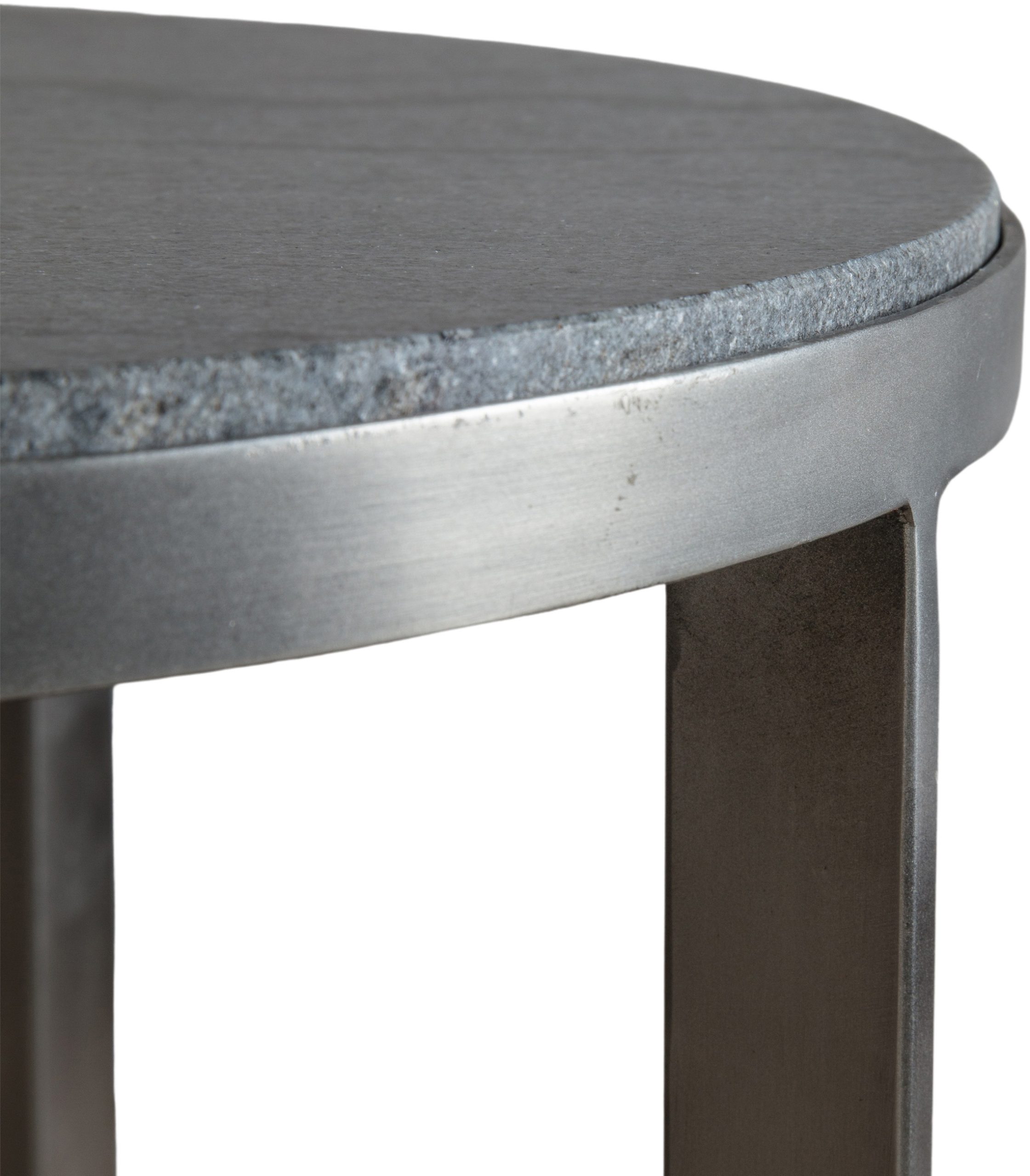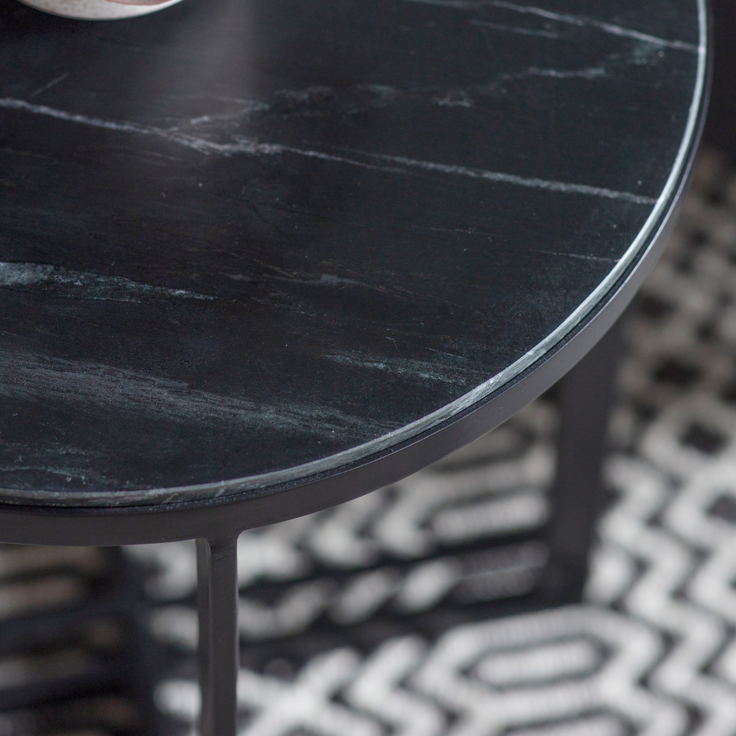 This side table makes a stunning addition to a room. The grey marble top, with subtle tones, pairs beautifully with the brushed steel metal base, for a sophisticated apartment living look. A matching side table is available, and both tables are also offered in black which feature black Indian marble and a matt black metal base. Thanks to the marble being a natural material, each table is unique.