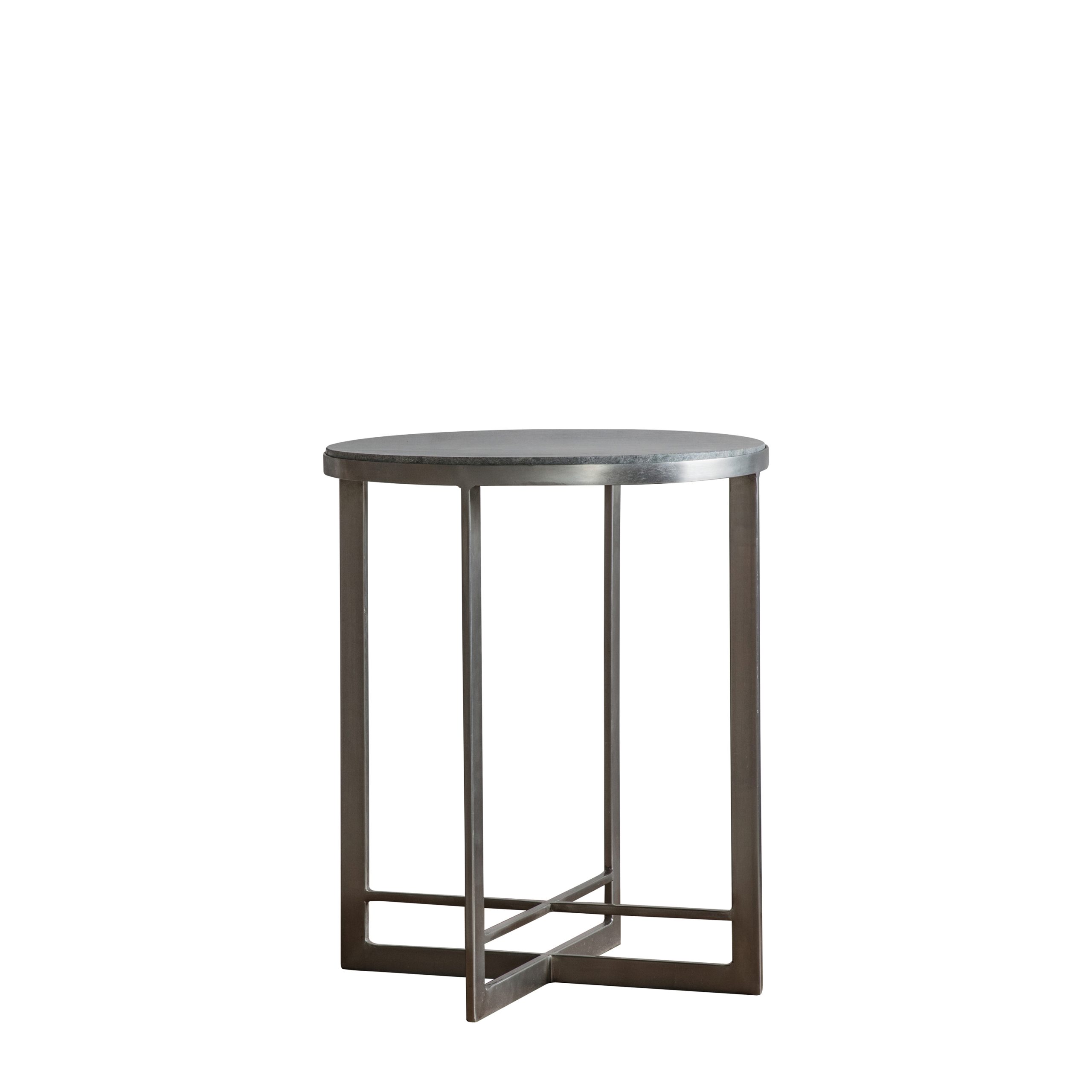 Gallery Direct Necton Side Table Silver This side table makes a stunning addition to a room. The grey marble top, with subtle tones, pairs beautifully with the brushed steel metal base, for a sophisticated apartment living look. A matching side table is available, and both tables are also offered in black which feature black Indian marble and a matt black metal base. Thanks to the marble being a natural material, each table is unique.