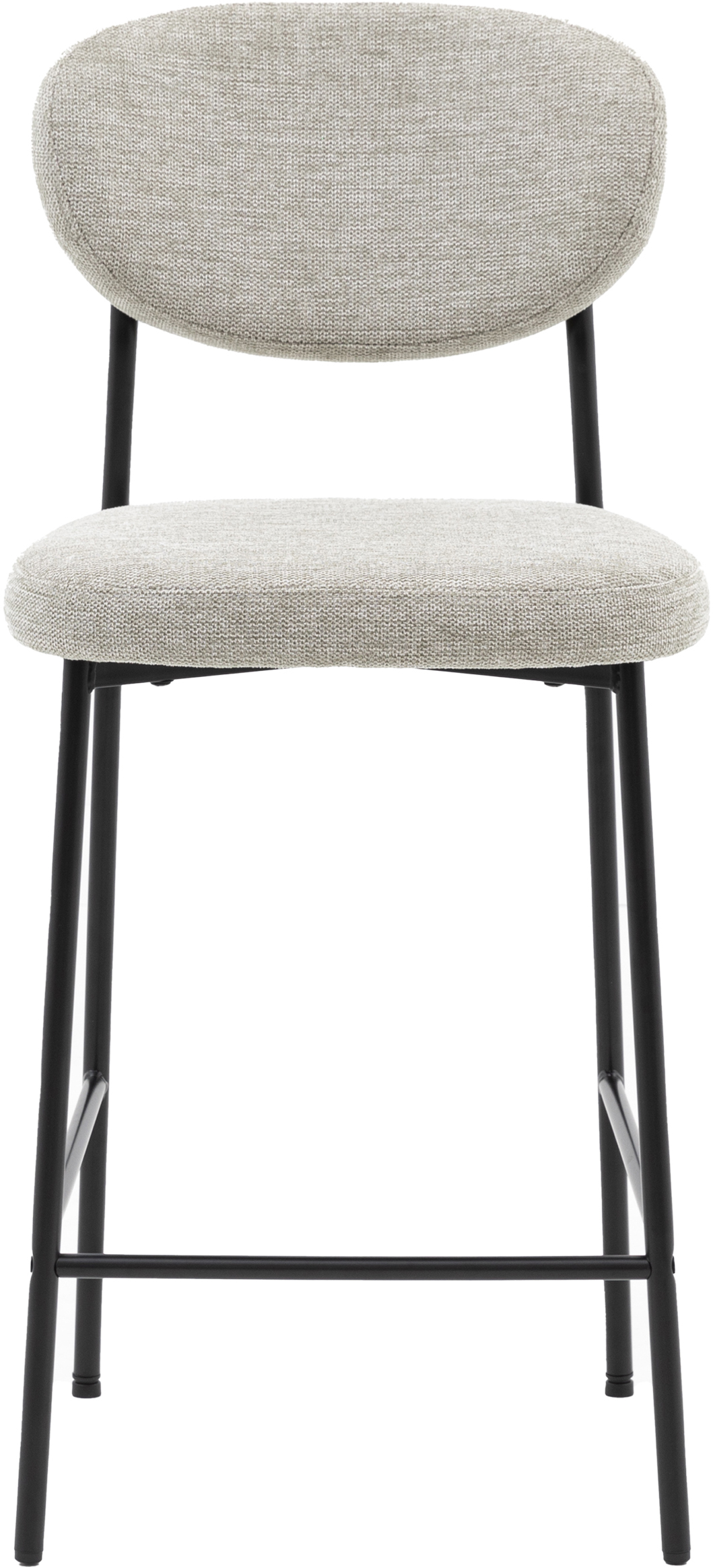 Gallery Direct Oppo Stool Natural (2pk) The Gallery Direct Oppo Stool Natural is a stylish and comfortable addition to any bar counter or kitchen island. Its unique oval-shaped backrest and sleek black metal legs create a modern and eye-catching look. The soft, upholstered seat provides comfort and style, while the dark grey fabric adds a touch of sophistication.