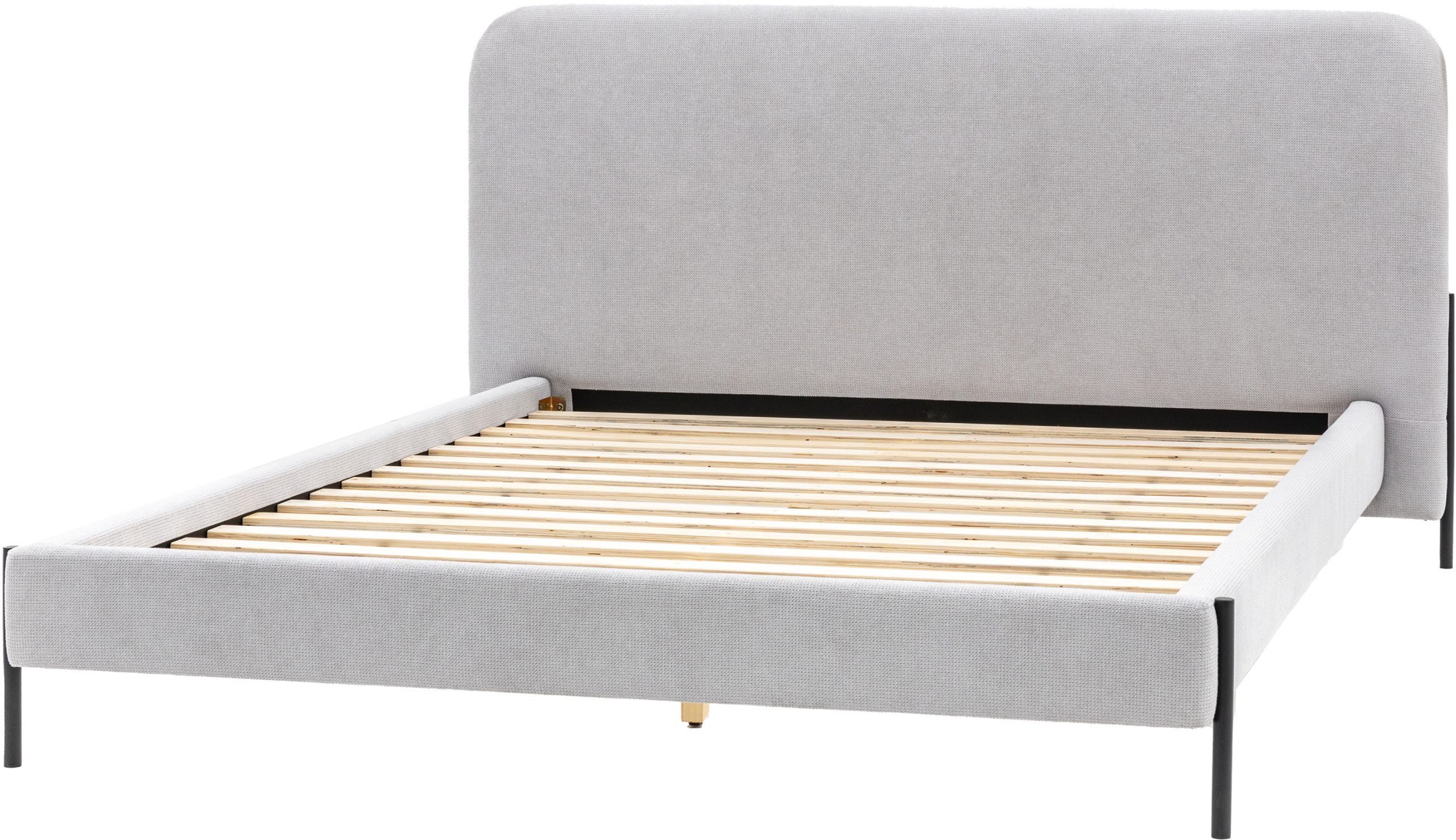 This king size bedstead’s modern design and clean lines will suit a wide variety of interiors with ease. The sleek black metal legs complement the soft curves of the simple rounded headboard, creating an effortlessly cool look that will add a contemporary touch to your bedroom.
