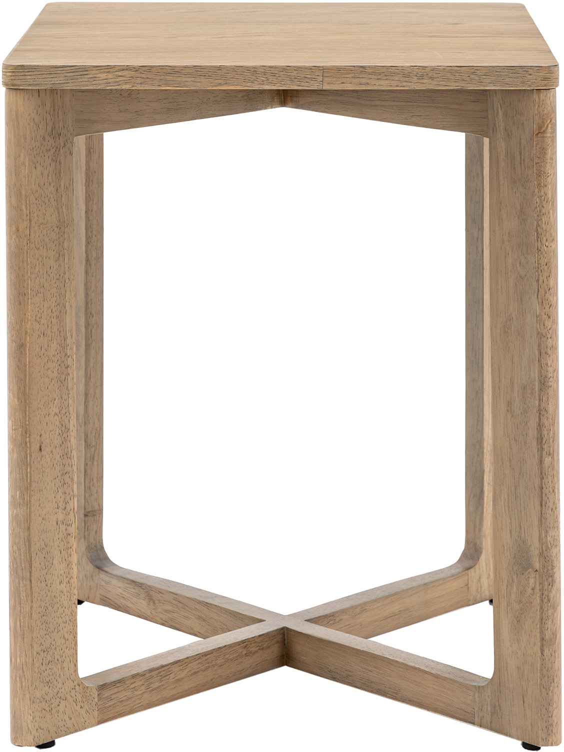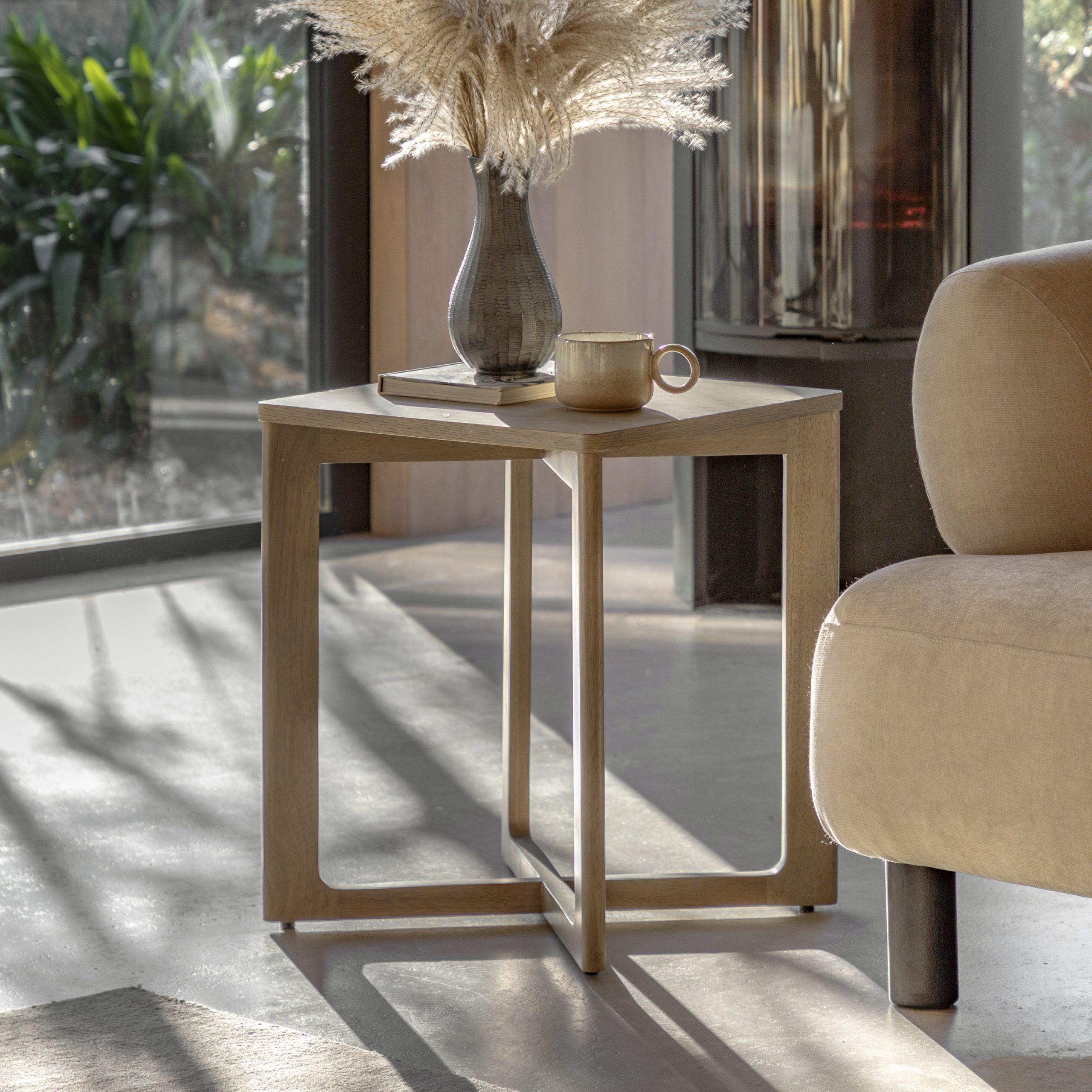 Gallery Direct Panelled Side Table This lovely side table is designed for apartment living but would look equally at home in a wide range of interiors. It features an oak veneered top with a grey wash finish and solid rubberwood legs matched to the finish of the top. Matching pieces are available.