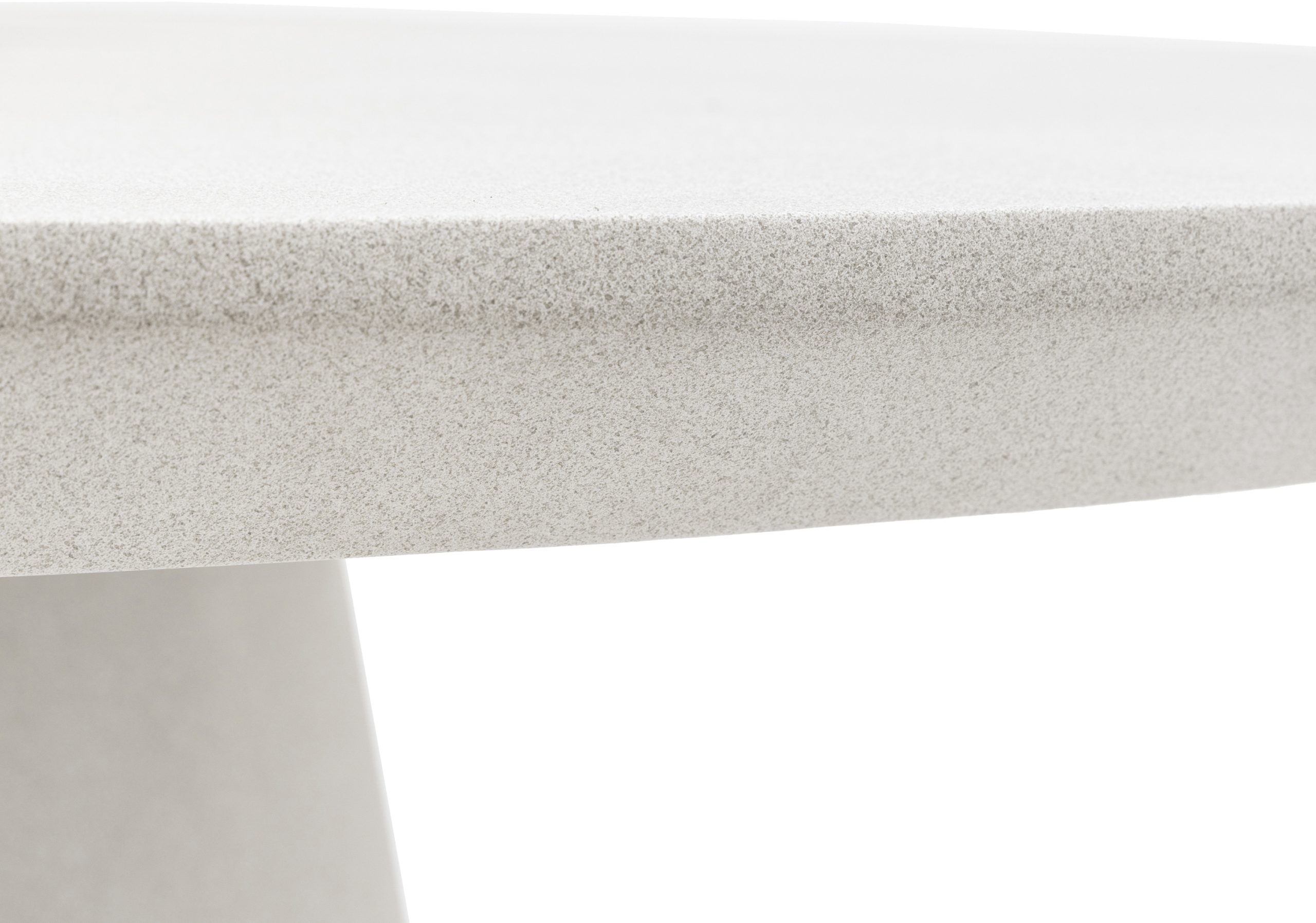 The Gallery Direct Pedra Round Dining Table Linen is a stylish and modern addition to any indoor or Outdoor space. Its minimalist design and unique concrete finish create a contemporary and industrial look. The round tabletop and tapered base provide ample surface area for drinks, snacks, or decorative items. Perfect for adding a touch of urban chic to your home or garden.