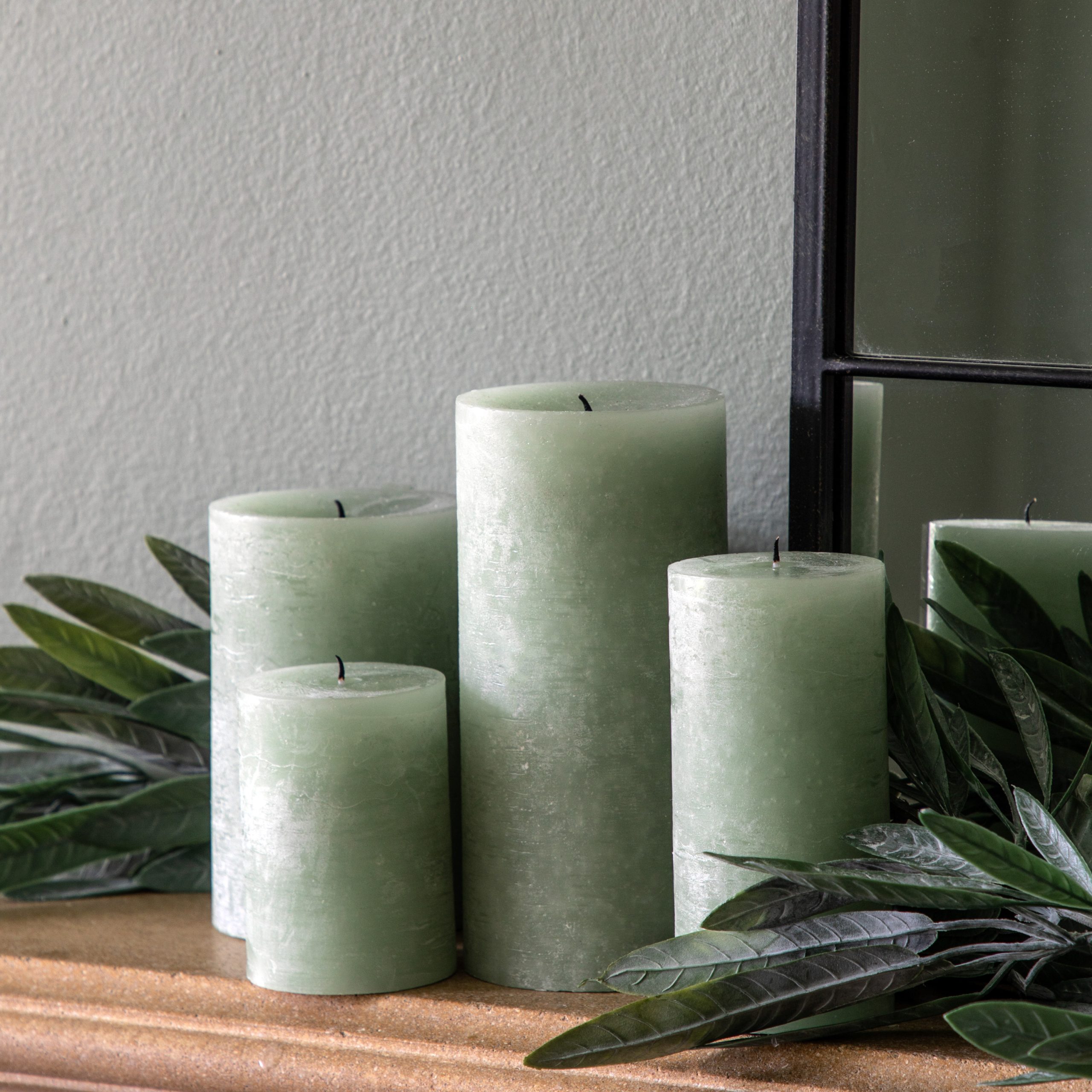 Classic pillar candle in a contemporary sage colour, perfect addition to a candlestick or lantern. Burn time of approximately 115 hours.