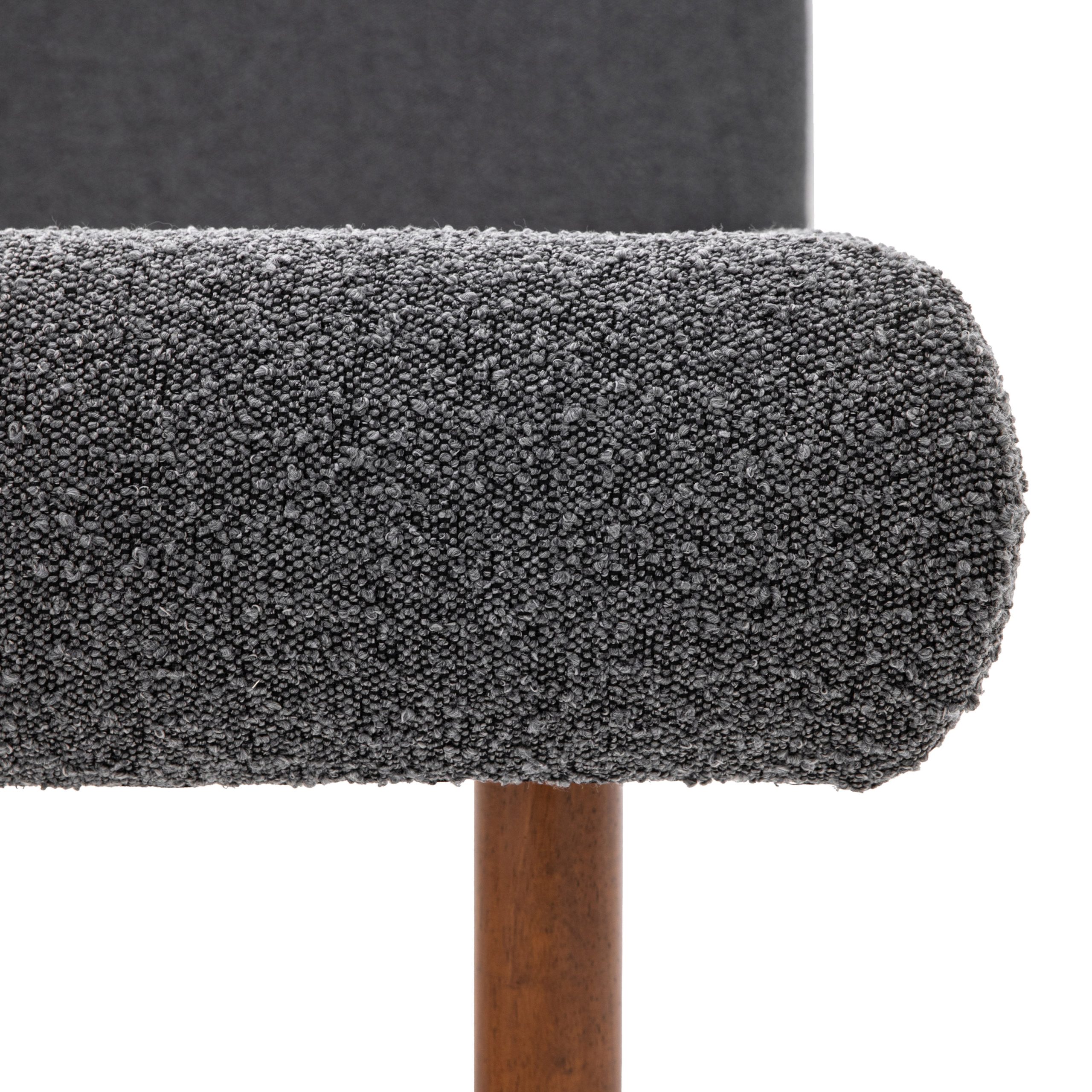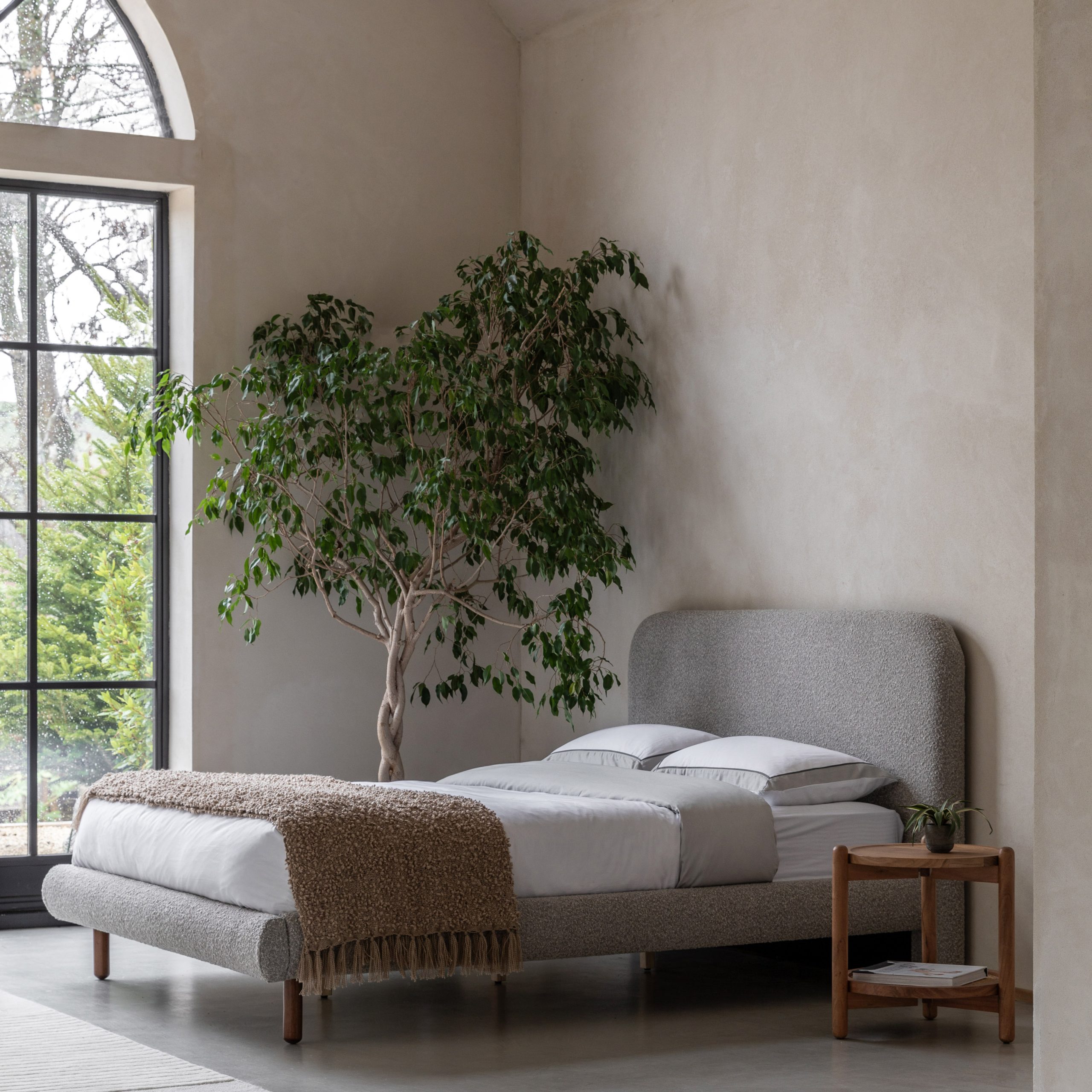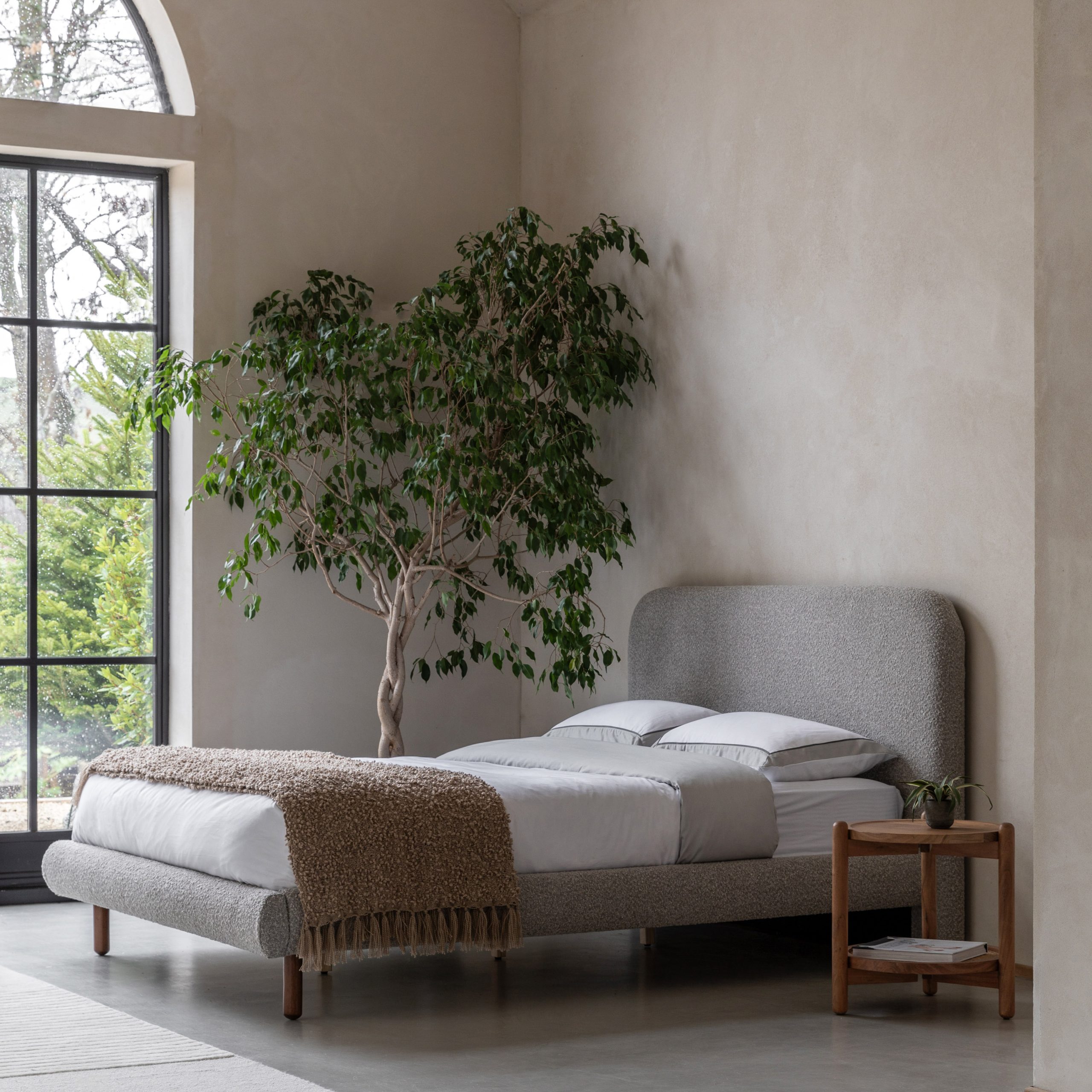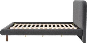 Gallery Direct Rabley 4’6 Bedstead Charcoal Upholstered in dark grey boucle fabric with an intriguing bobble texture this modern double bedstead will update any beDooroom. The slim wooden legs and gently curved headboard add to the contemporary feel, making this bedstead the perfect addition to any modern home. Also available in other sizes and colours.
