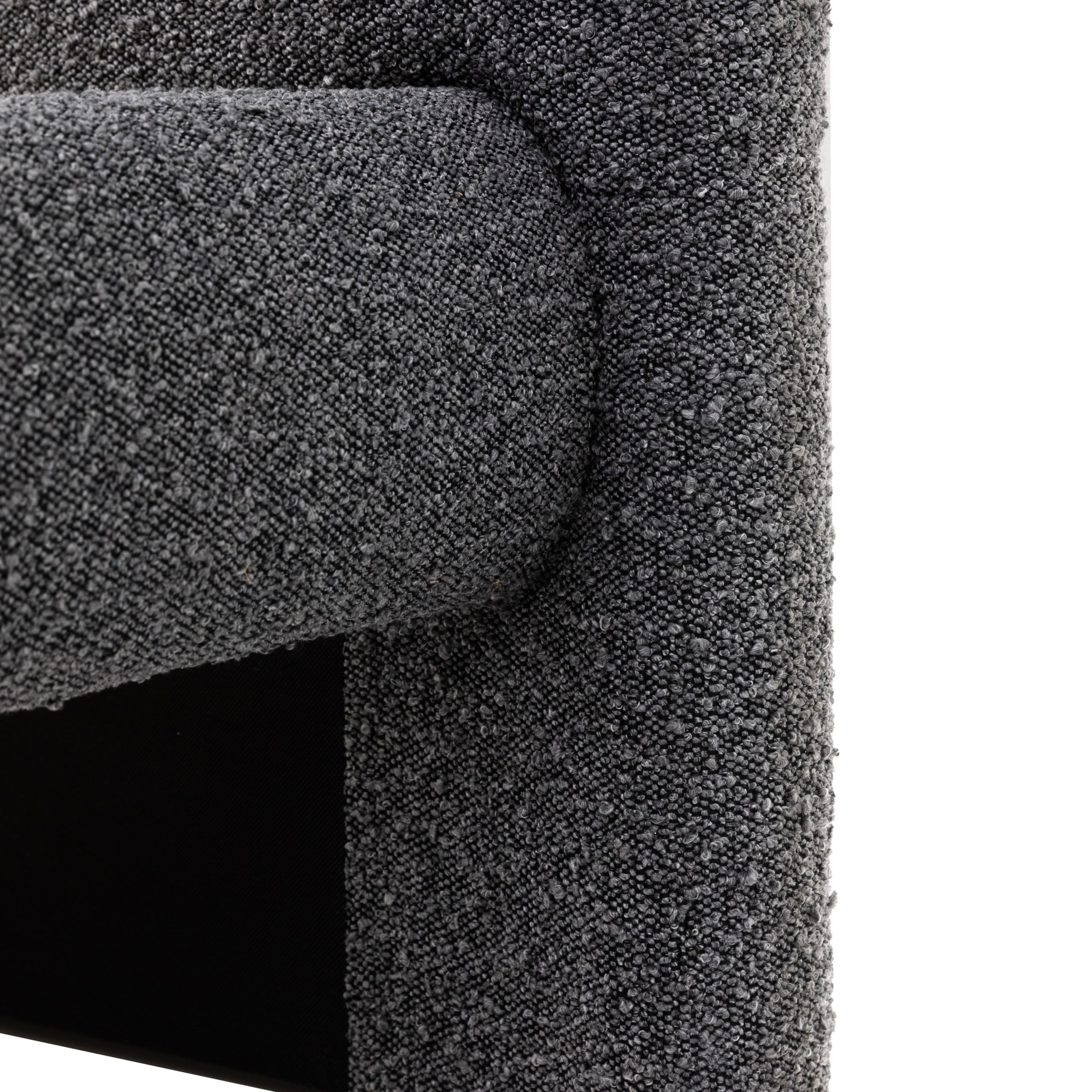 Upholstered in dark grey boucle fabric with an intriguing bobble texture this modern king size bedstead will update any beDooroom. The slim wooden legs and gently curved headboard add to the contemporary feel, making this bedstead the perfect addition to any modern home. Also available in other sizes and colours.