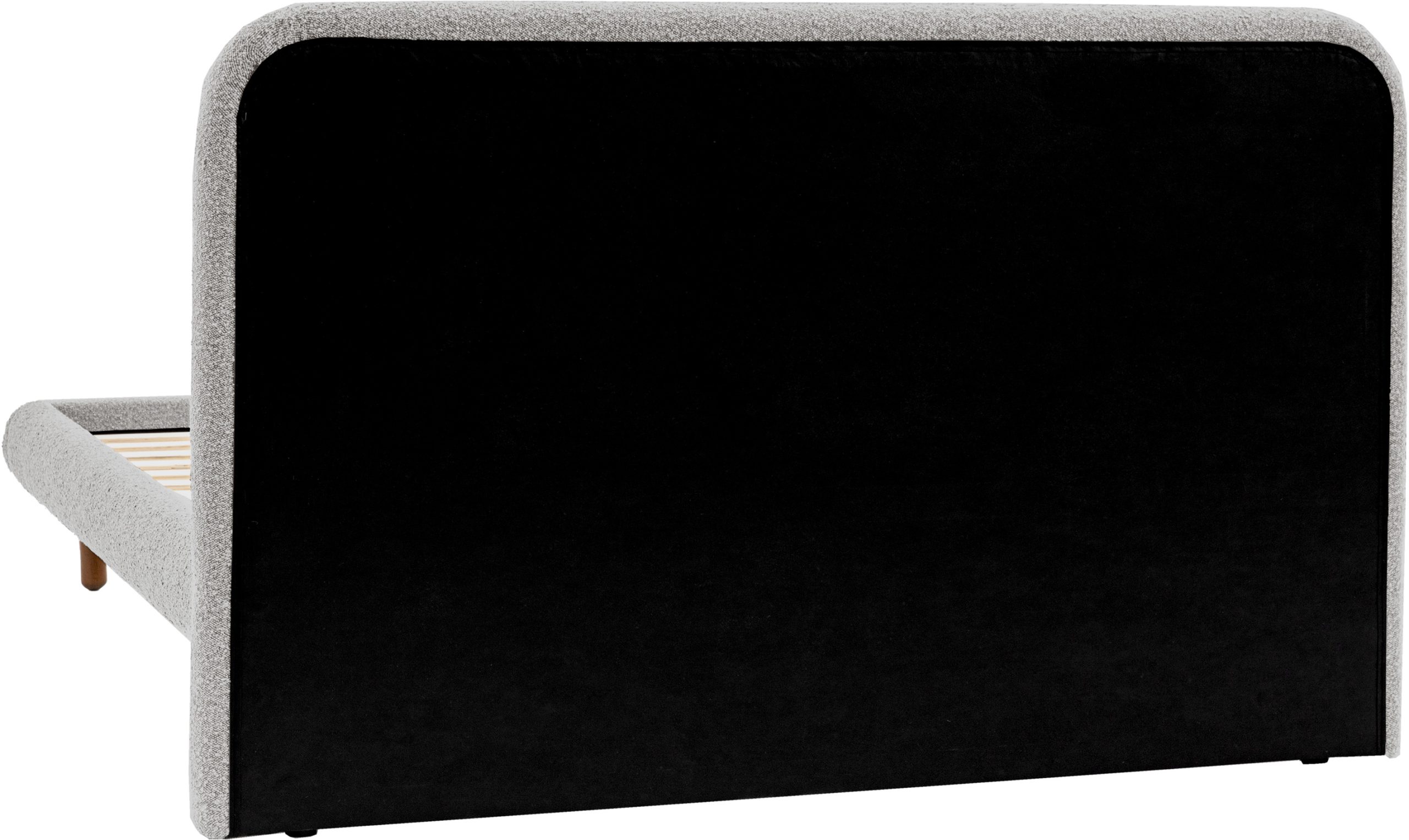 Upholstered in light grey boucle fabric with an intriguing bobble texture this modern king size bedstead will update any bedroom. The slim wooden legs and gently curved headboard add to the contemporary feel, making this bedstead the perfect addition to any modern home. Also available in other sizes and colours.