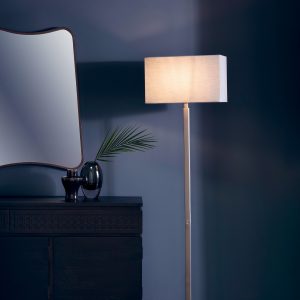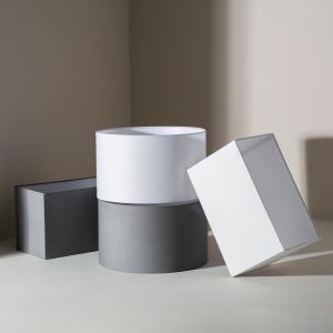 A smart, clean line, modern, rolled edge shade finished in vintage white cotton fabric. Also available in cool grey cotton fabric. Choose the style you need by matching the perfect shade shape to a selection of wall, table and floor lamps that are available in a smart matt nickel or polished chrome finish. Note – this shade has a fixed gimbal but is suitable for use with pendants and floor/table bases.
