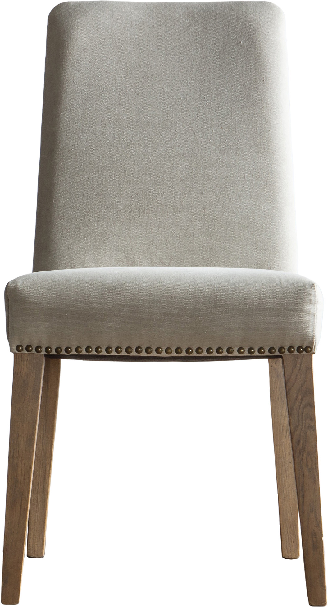 Gallery Direct Rex Dining Chair Cement Linen (Set of 2) Set of 2 upholstered chairs that will fit seamlessly in both traditional and modern dining environments. Upholstered in natural Cement linen and finished with brass hand nailhead trim and angled solid ash legs.