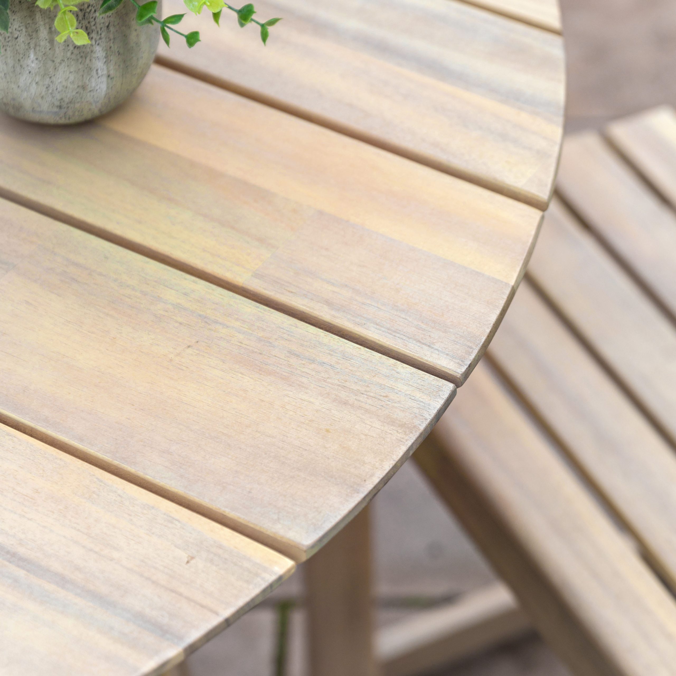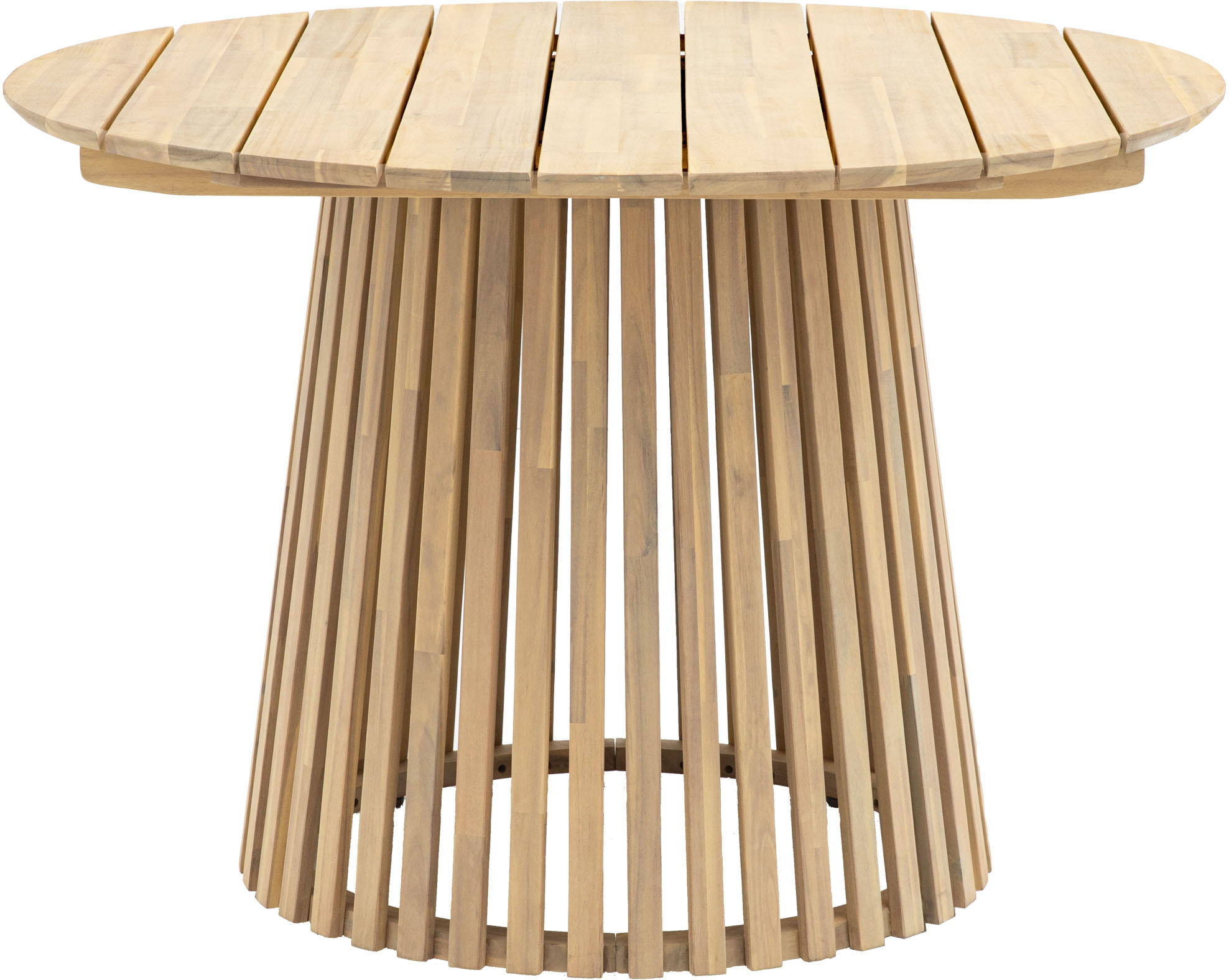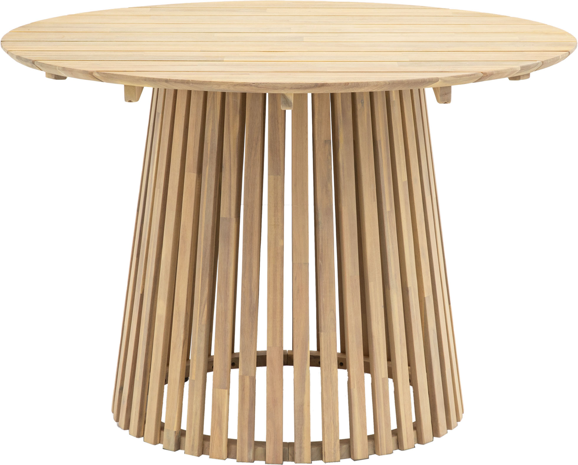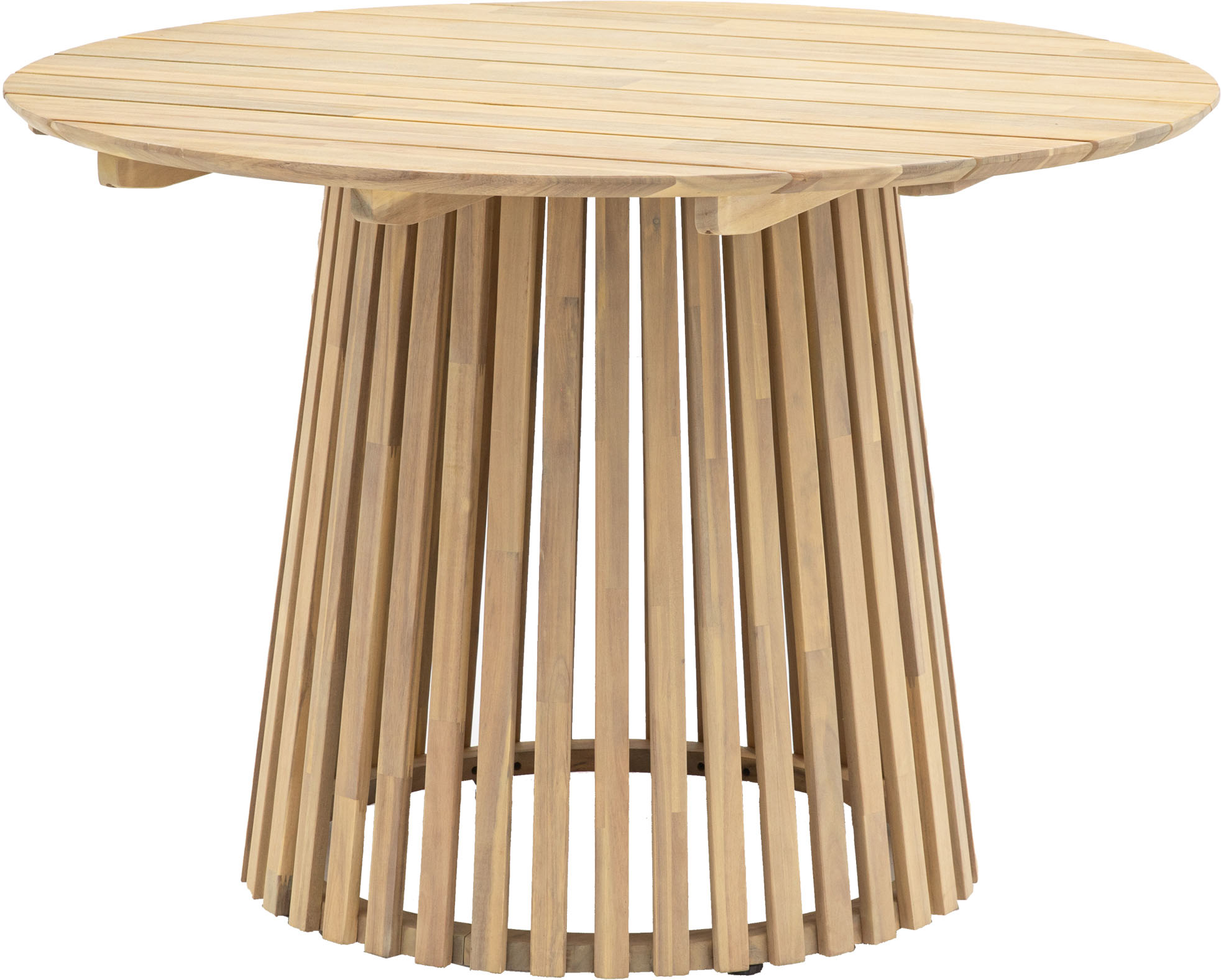 Gallery Direct Rialto Round Dining Table 4 Seater The Gallery Direct Rialto Round Dining Table 4 Seater features a circular top and a striking, slatted base. Crafted from durable acacia wood, it brings a touch of sophistication and warmth to any patio or garden setting. The slatted base adds visual interest and with ample space for dining, this table is perfect for hosting gatherings or enjoying meals al fresco.