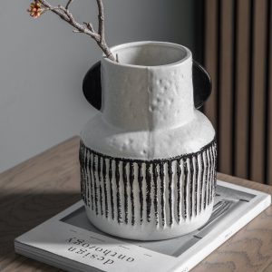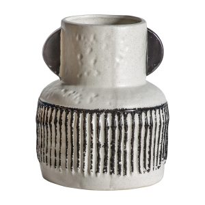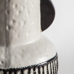 This striking monochrome vase makes an eye-catching piece with its ribbed design emphasised by the dark glaze. A larger version is also available.