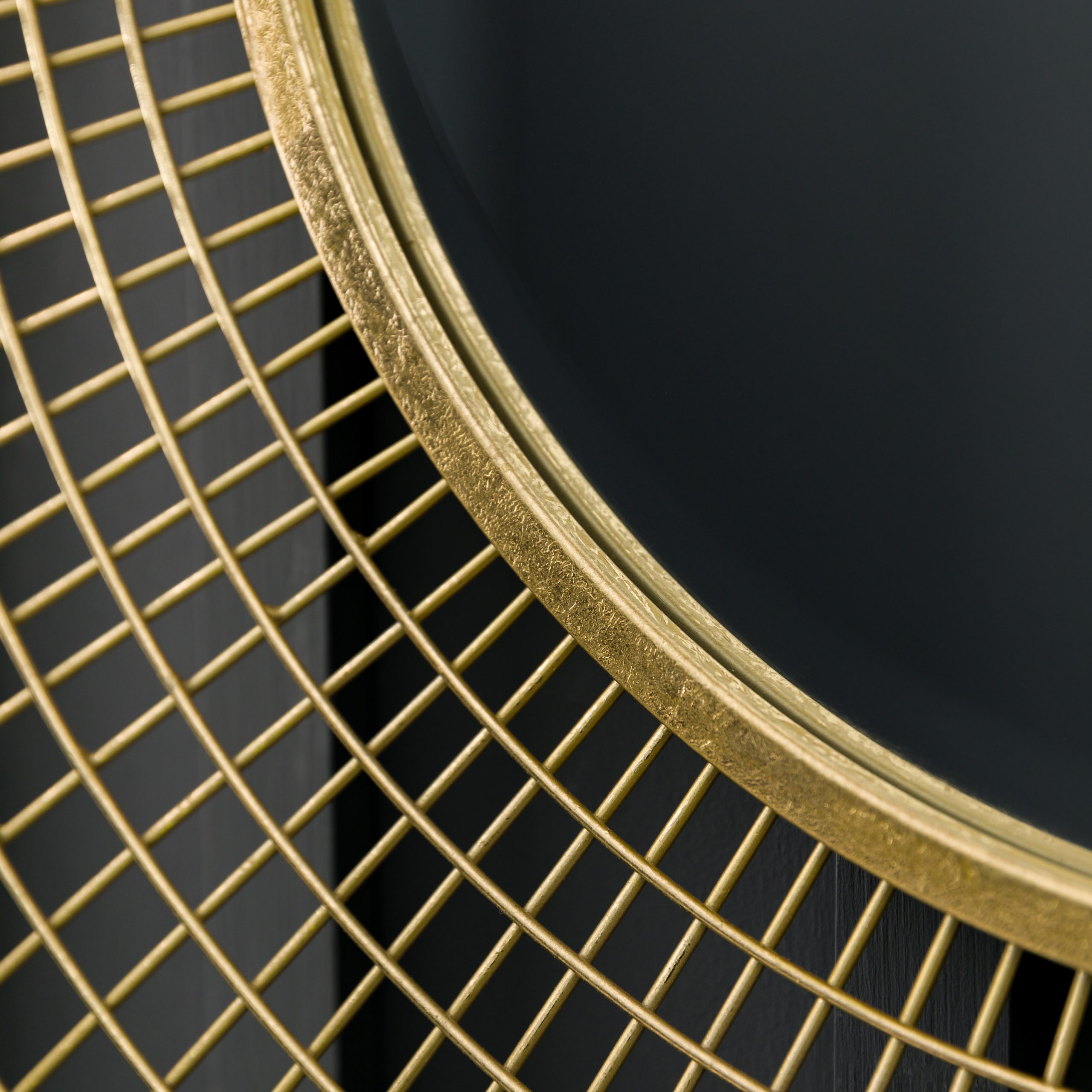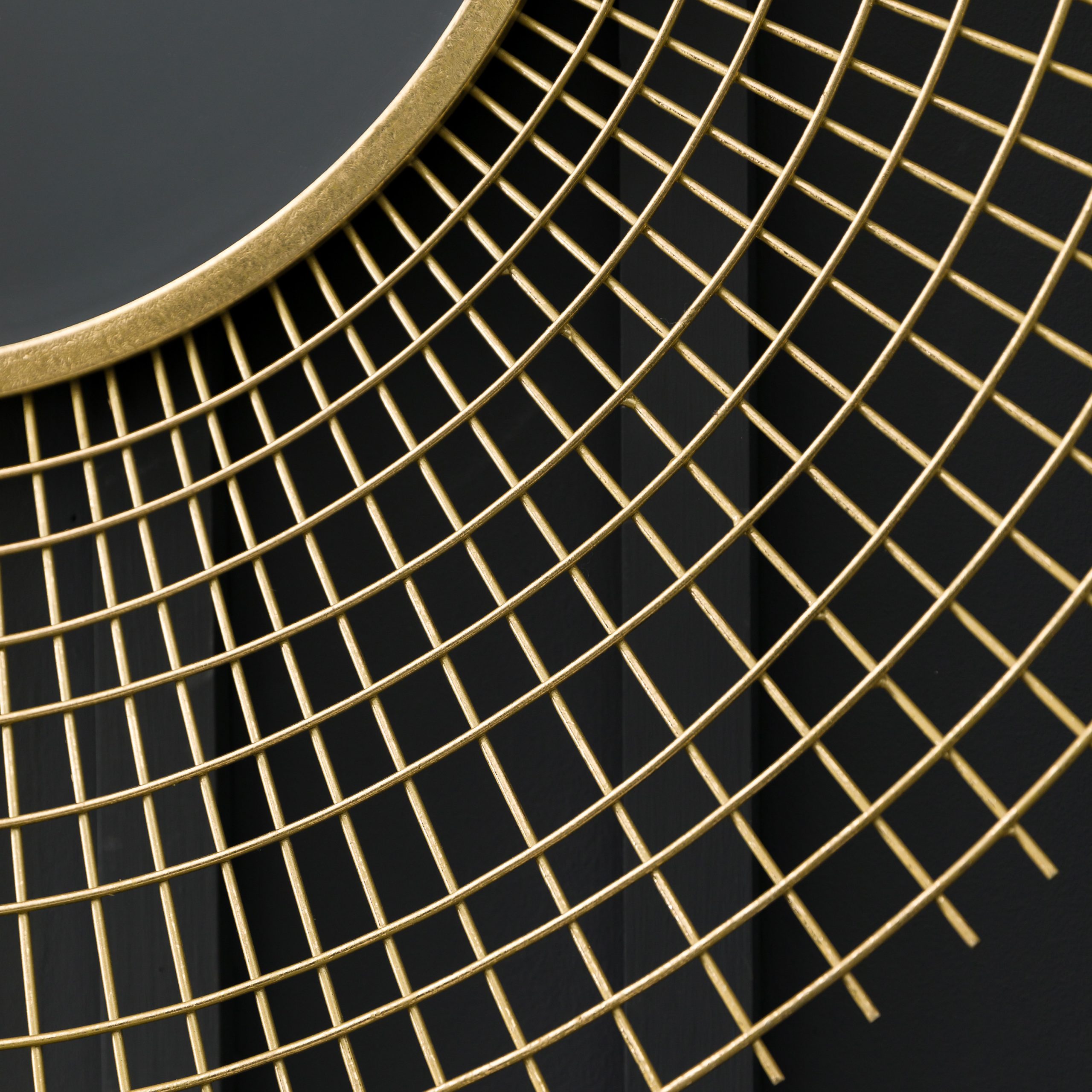 Decorative feature mirror to add a focal point to a wall, with a gold finish wirework lattice around the central mirror.