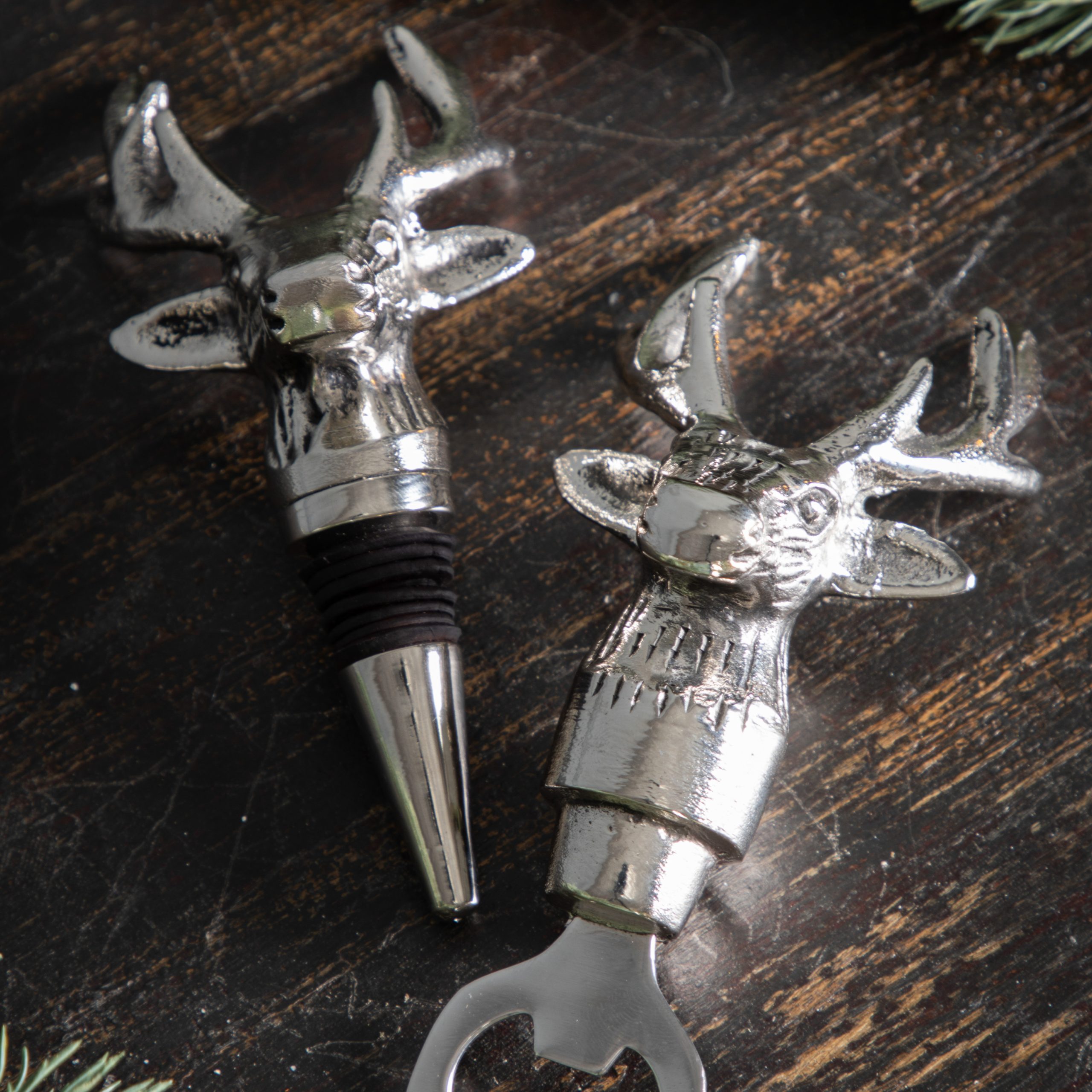 Add a luxe feel to your dinner table with this practical aluminium stag design bottle stopper.
