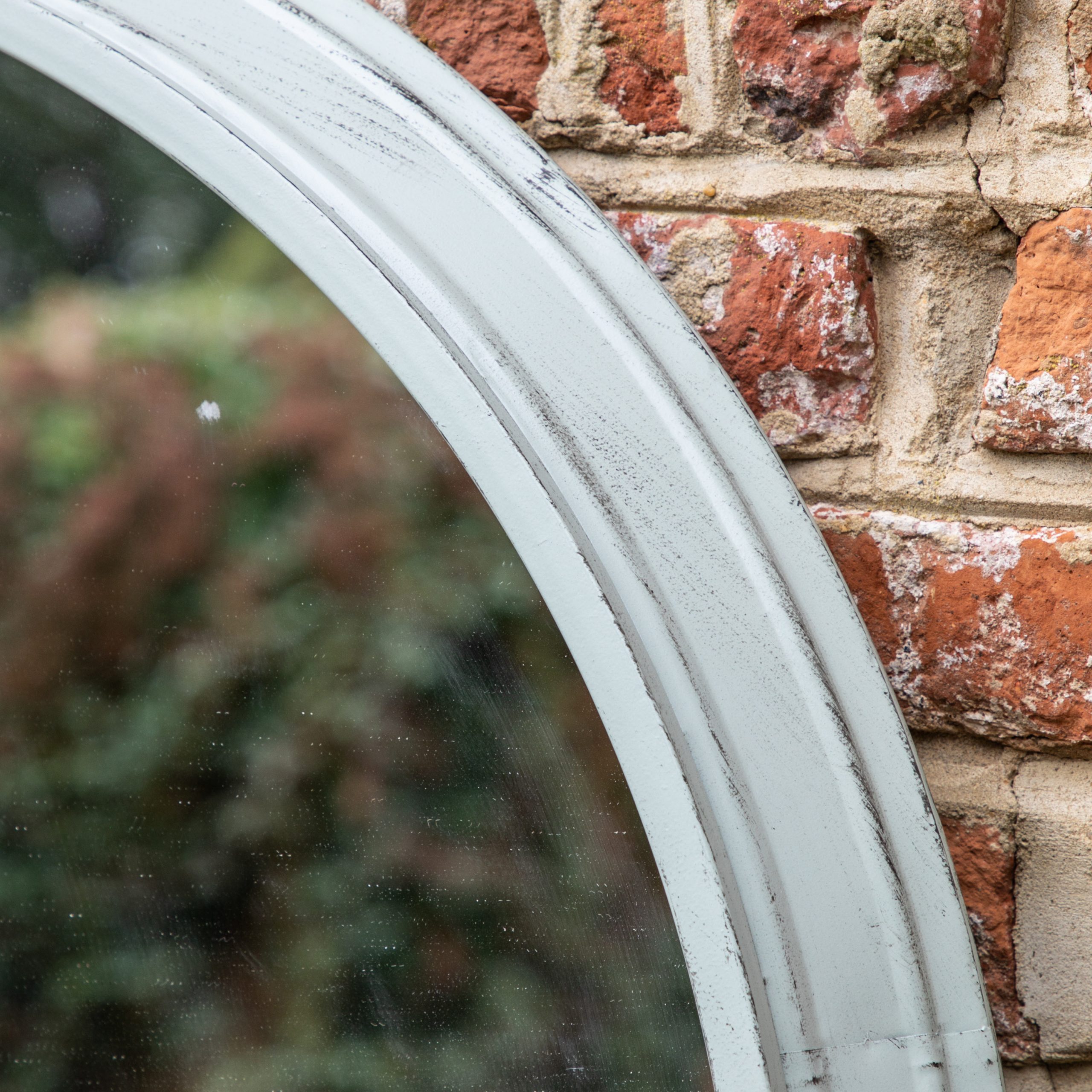 Add a little romantic charm to your garden with this chic Outdoor mirror. Simple and chic this large round mirror with its mint trim frame will add a elegant finishing touch to your Outdoor space. Perfect for creating the feeling of light and space in even the smallest darkest corners of your garden, balcony or patio area.