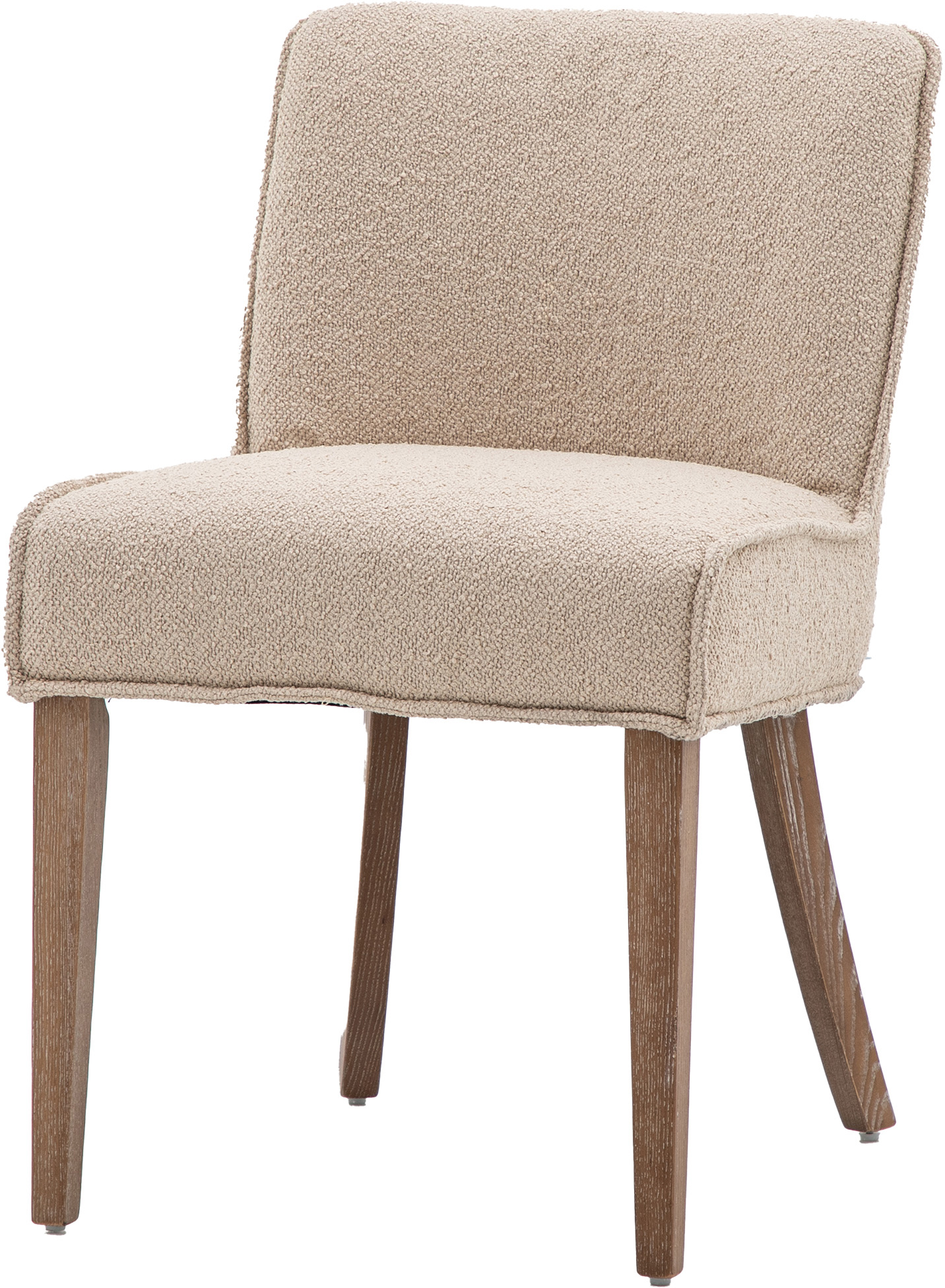 Set of 2 understated and chic dining chairs perfect for almost any interior and dining space. Upholstered in neutral taupe linen with gently curved legs.