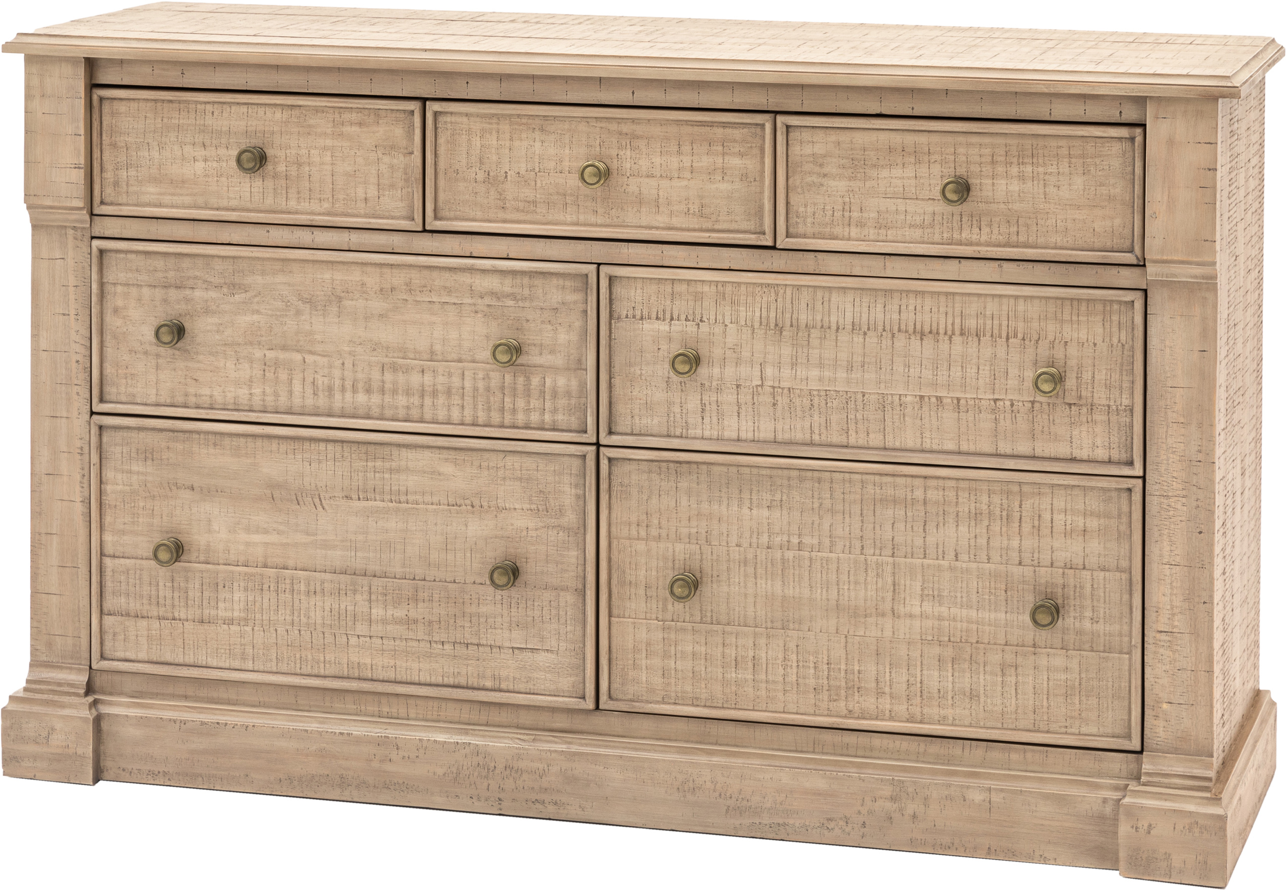 Gallery Direct Vancouver 7 Drawer Chest This 7 drawer chest is a charming and practical addition to any bedroom. Its weathered wood finish and classic design create a warm and inviting atmosphere. The seven spacious drawers offer ample storage space for clothing, linens, and other essentials. The dresser’s sturdy construction and timeless style make it a valuable addition to any home.