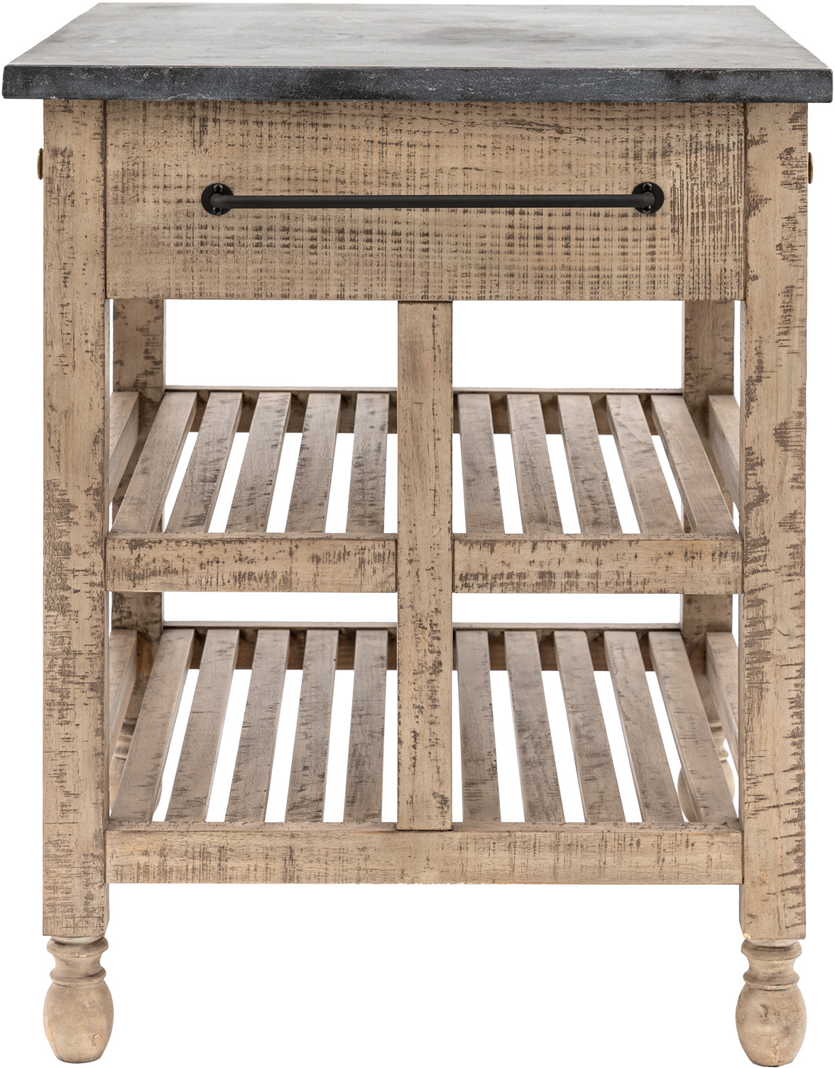 Offering an updated classic look, the Gallery Direct Vancouver Kitchen Island combines style and practicality, with its marble top and two drawers and two shelves for storage. It is crafted from North American pine solids and veneers where practical, with the clever use of a mill saw giving characteristic features of cross sawn timber to create a tactile, dramatic finish. Matching pieces are available.