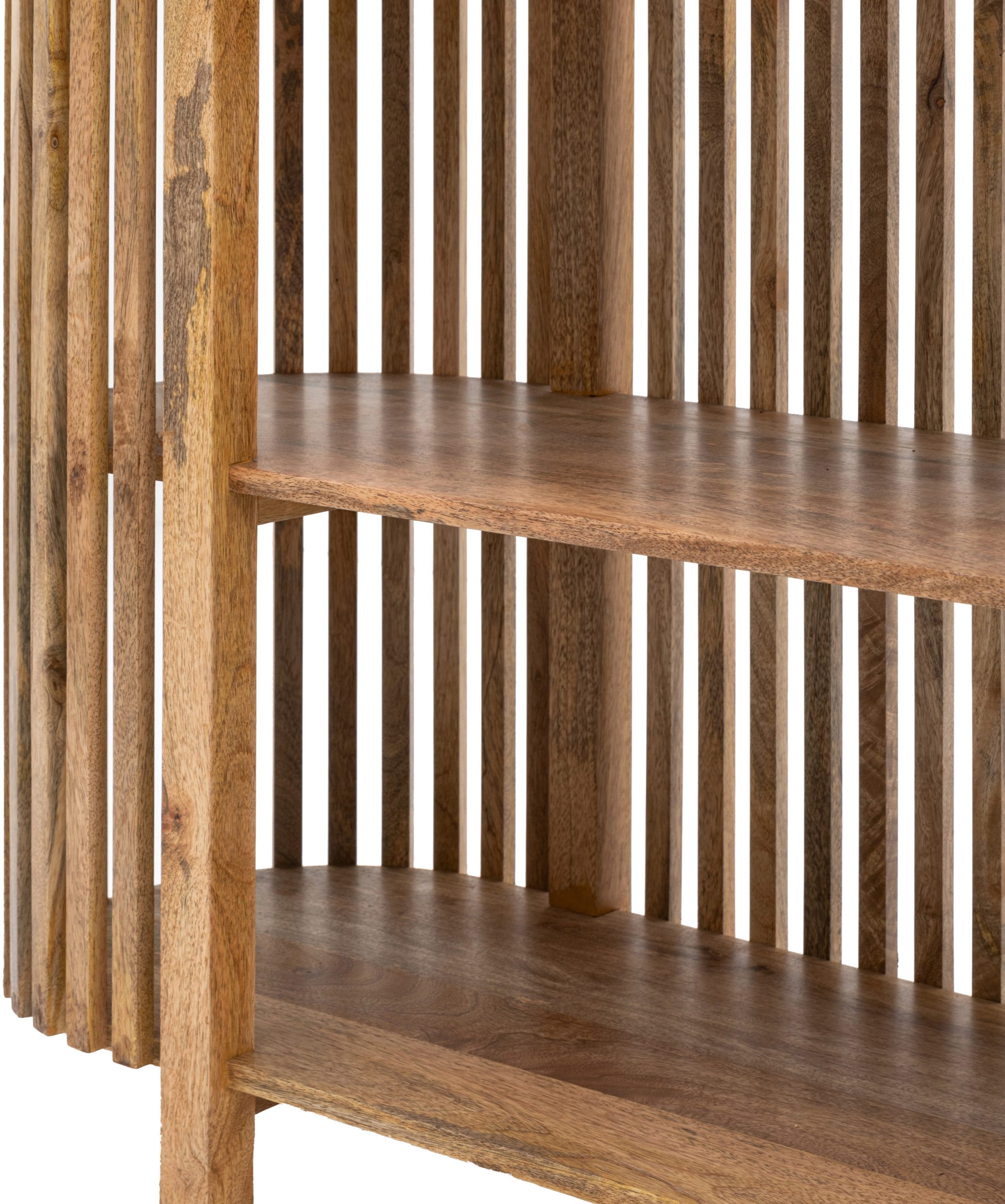 Gallery Direct Voss Slatted Console Table This stunning sideboard offers unusual stylish design. Crafted from solid mango wood, with a natural finish to show the grain, it features slats along the back, curving around the sides to the front. Black stud detailing on the slats adds the finishing touch.