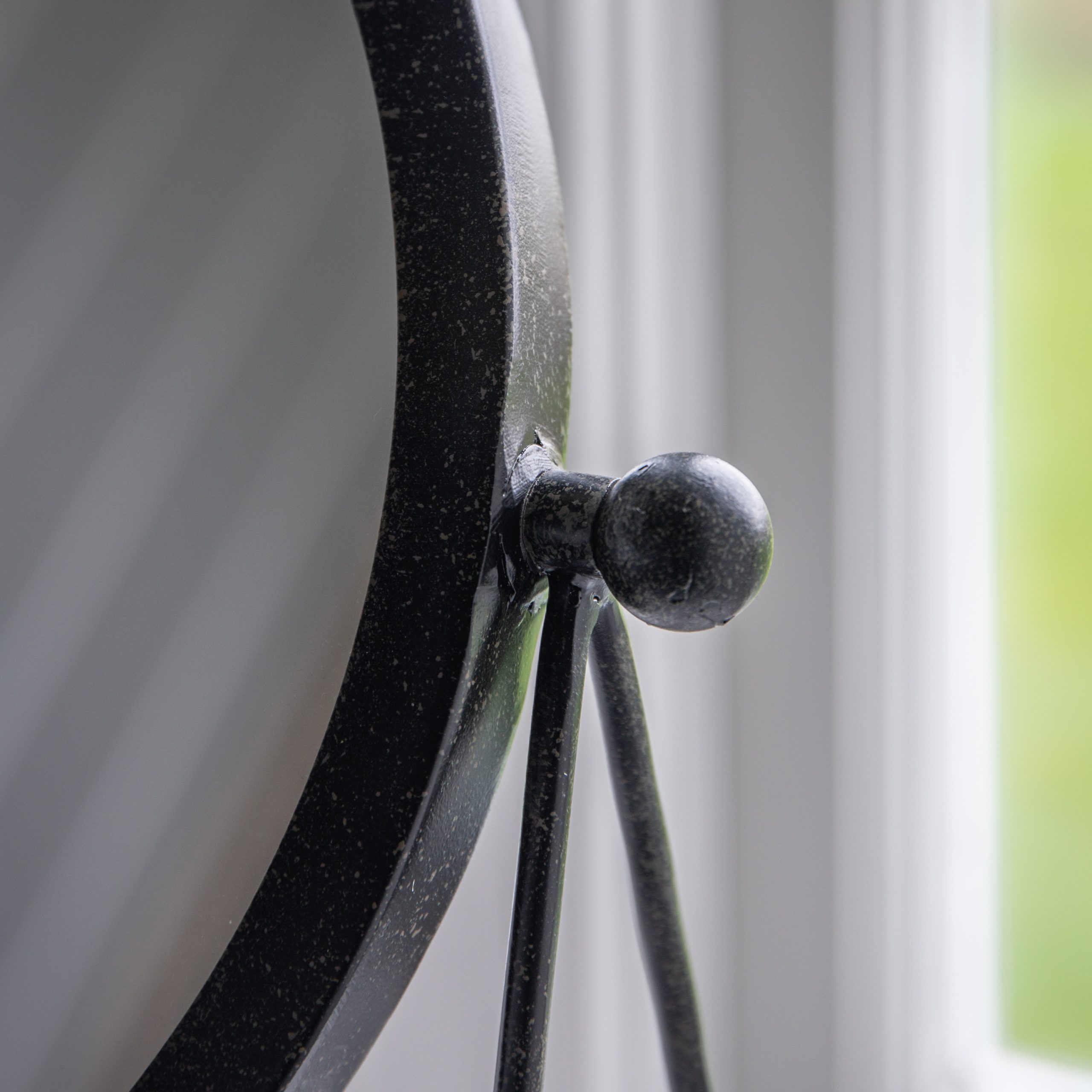 An petite industrial, table top mirror with adjustable head in a black finish. Perfect for a dressing table set up or bathroom.
