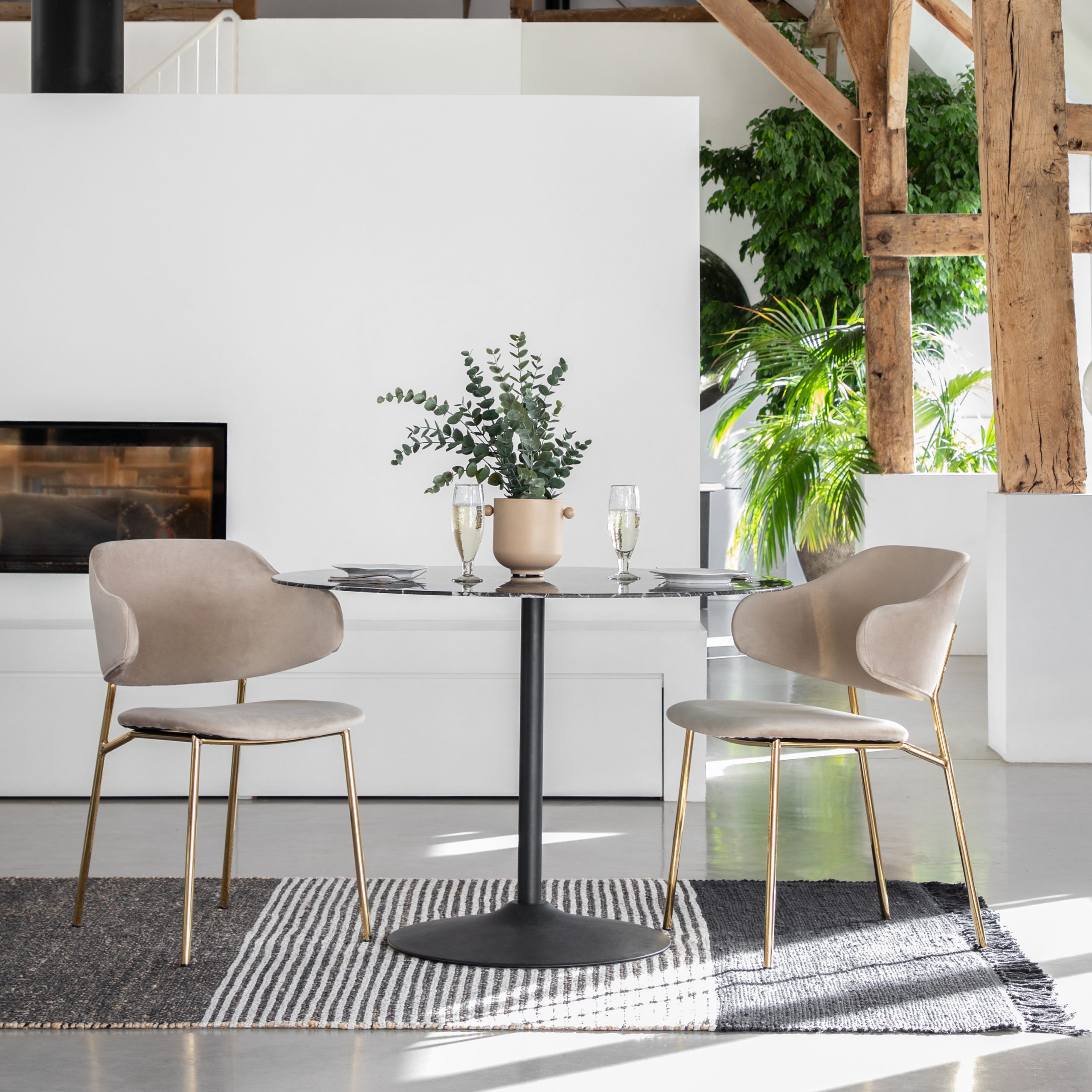 Gallery Direct Whitehall Dining Chair Taupe (Set of 2) Add a little luxury to your dining space or office. This set of 2 chairs offers contemporary modern design with a hint of old fashion glamour. Upholstered in soft taupe velvet, the chairs feature a unique split design and slim golden metal legs.