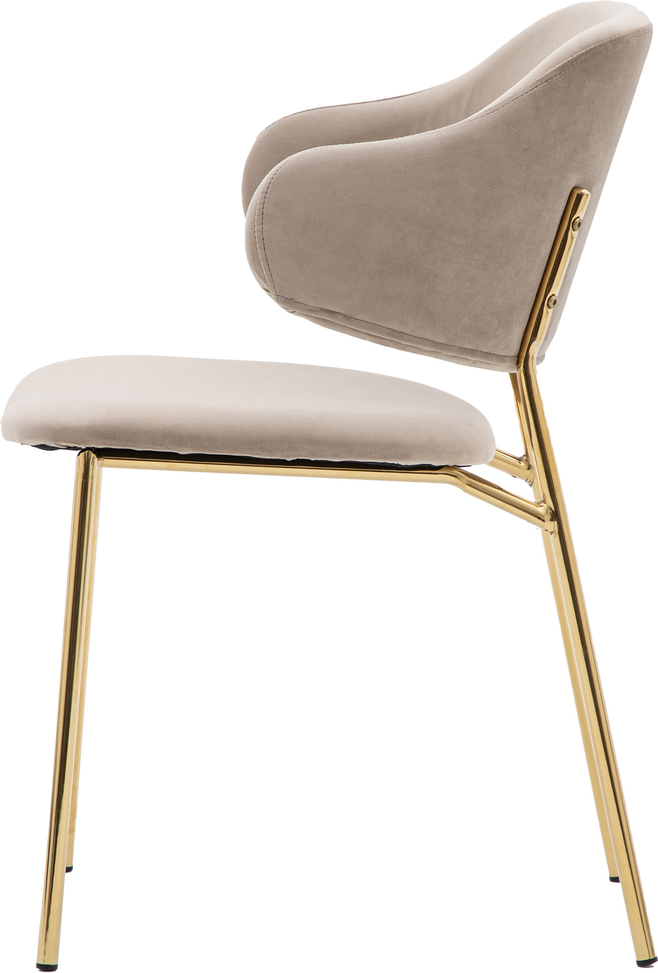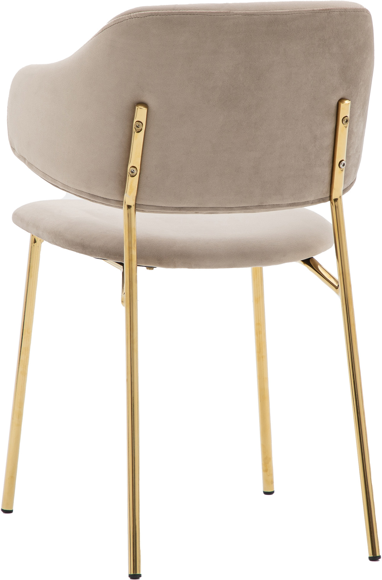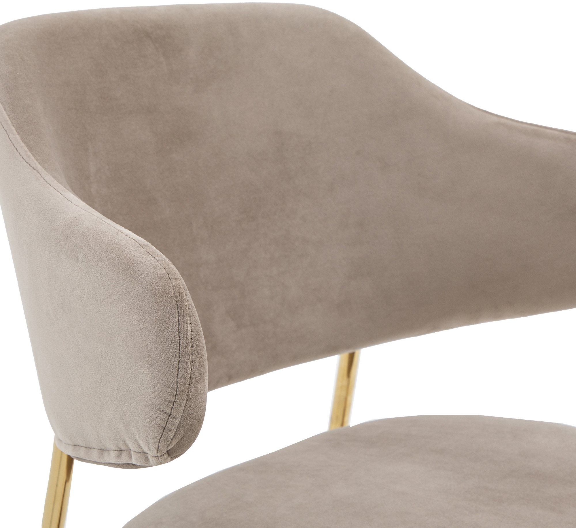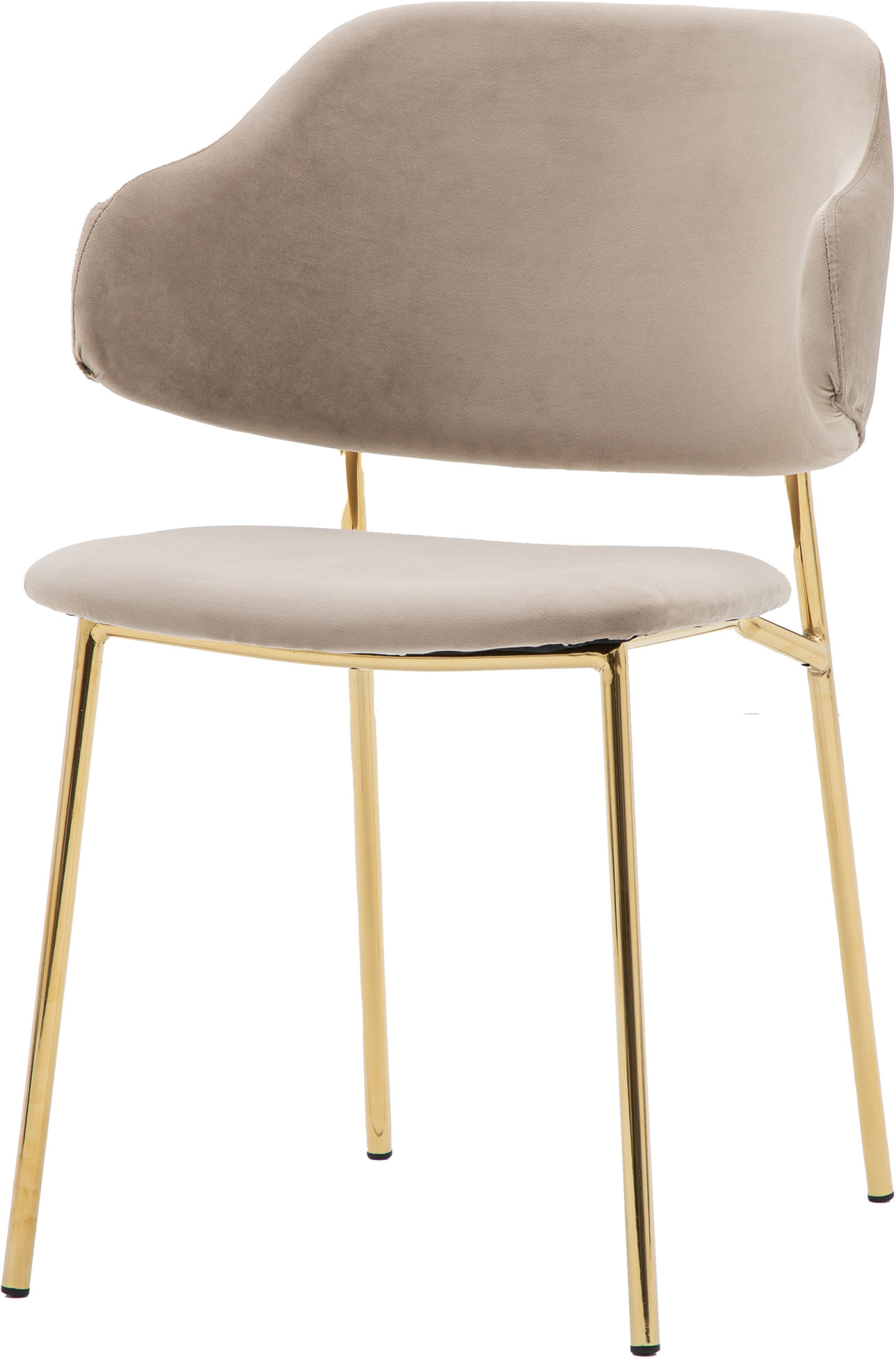 Add a little luxury to your dining space or office. This set of 2 chairs offers contemporary modern design with a hint of old fashion glamour. Upholstered in soft taupe velvet, the chairs feature a unique split design and slim golden metal legs.
