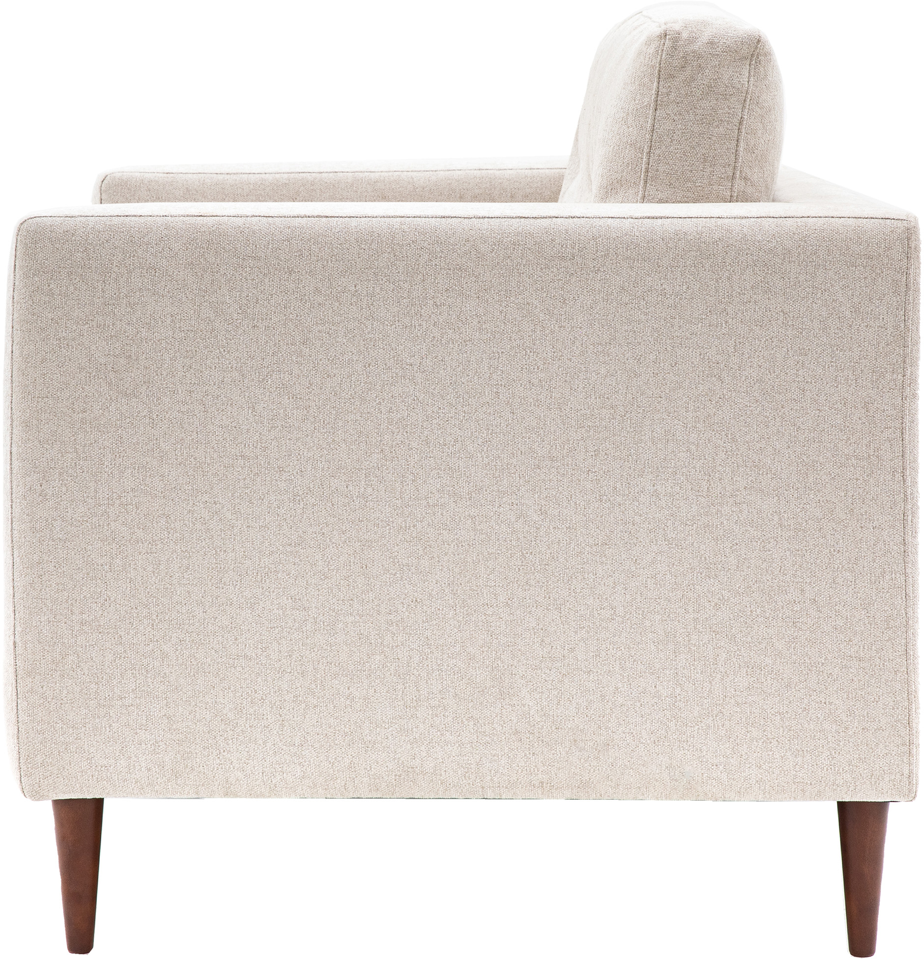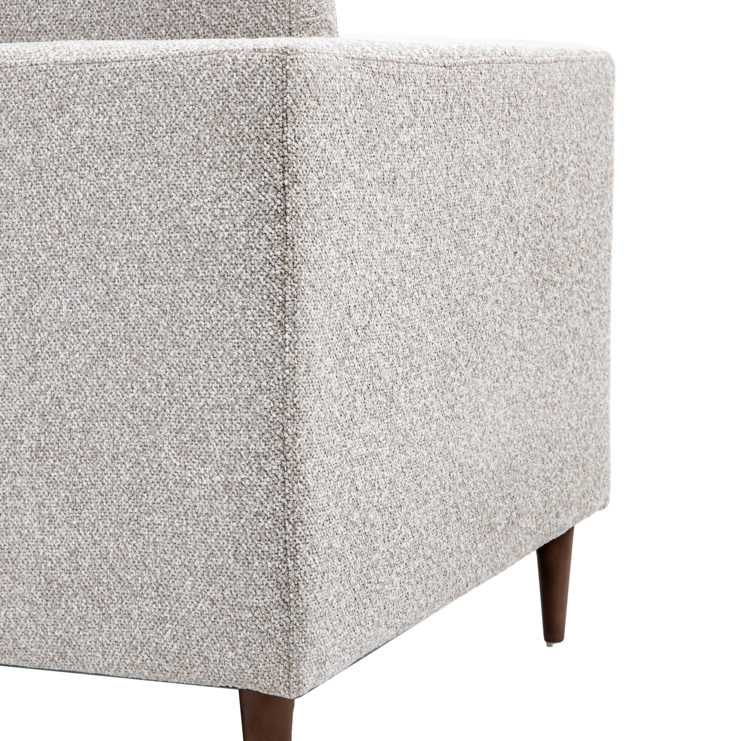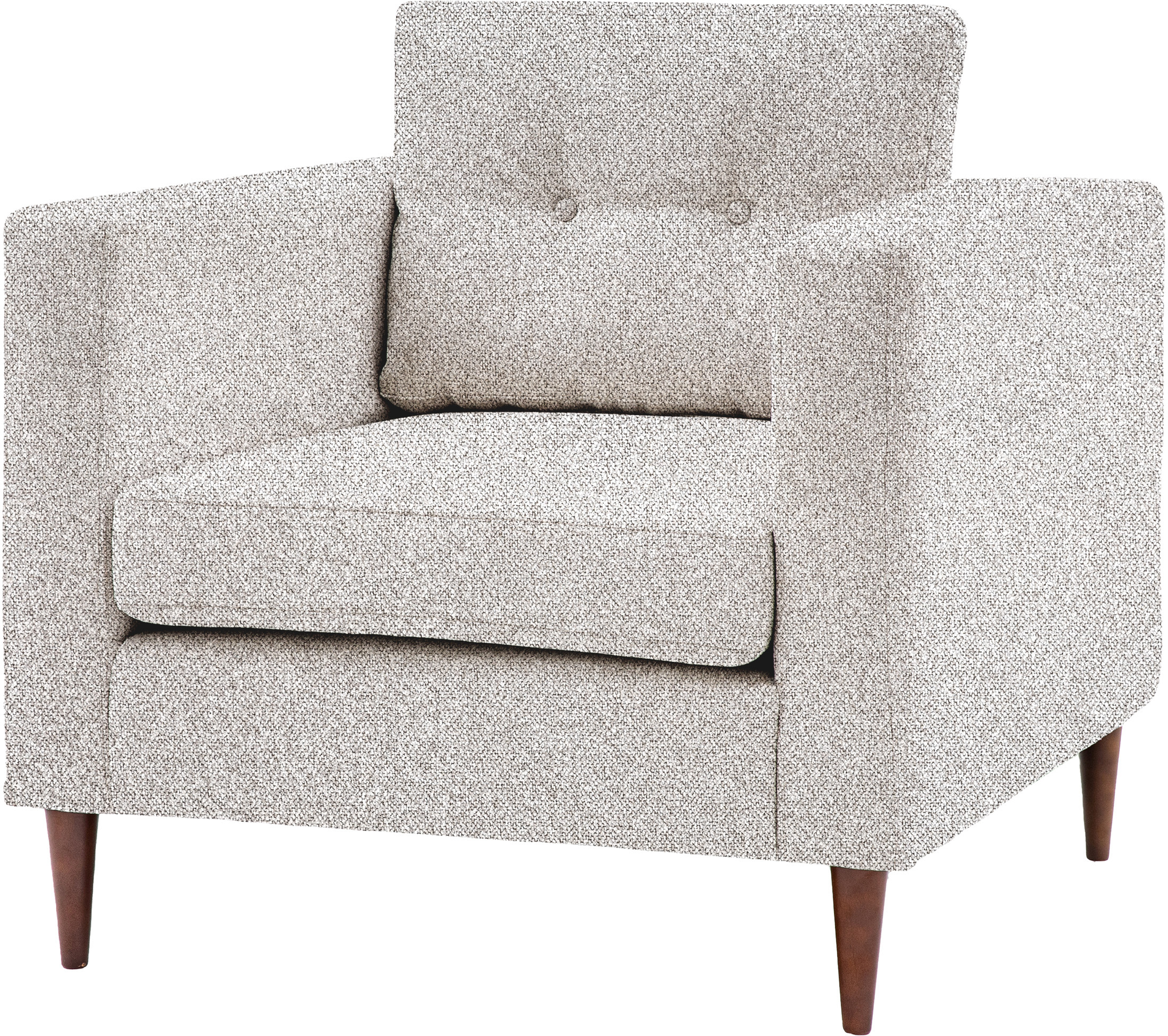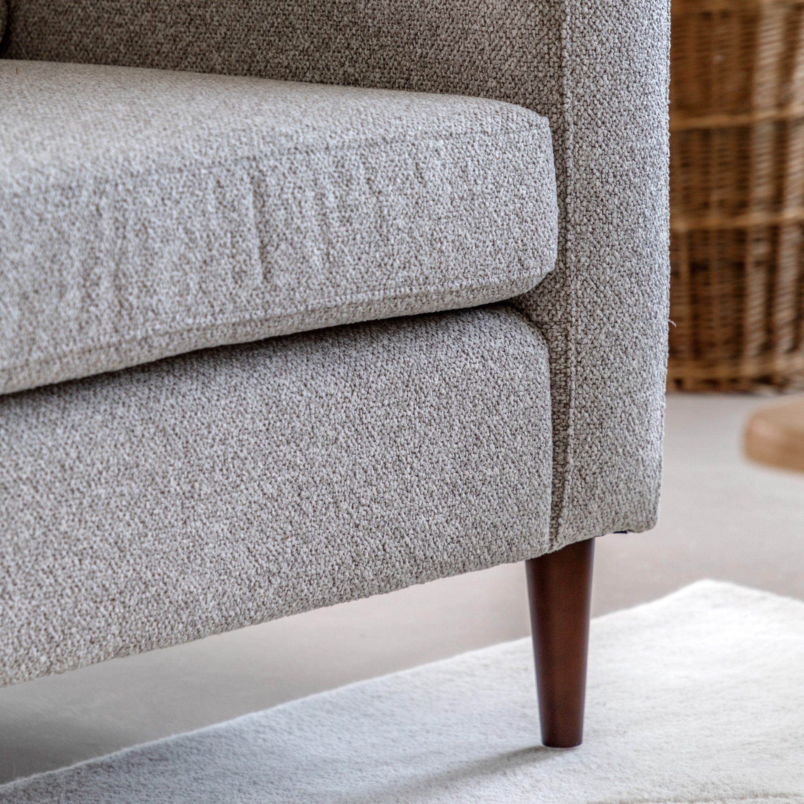 Offering stylish contemporary design, this lovely armchair features sleek lines with block arms and button detailing on the back paired with elegant tapered wooden feet. It is upholstered in a lovely light grey coloured fabric.