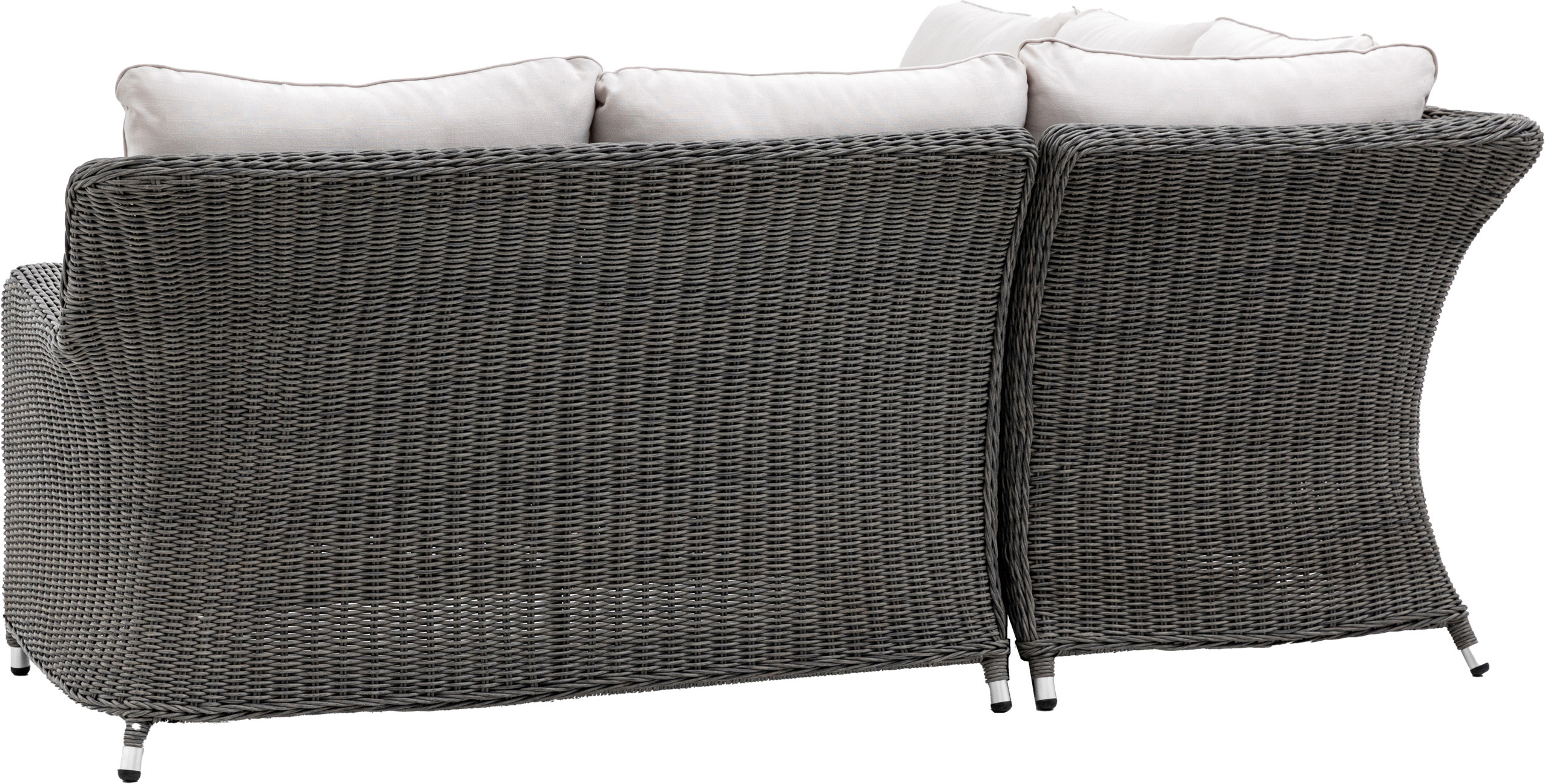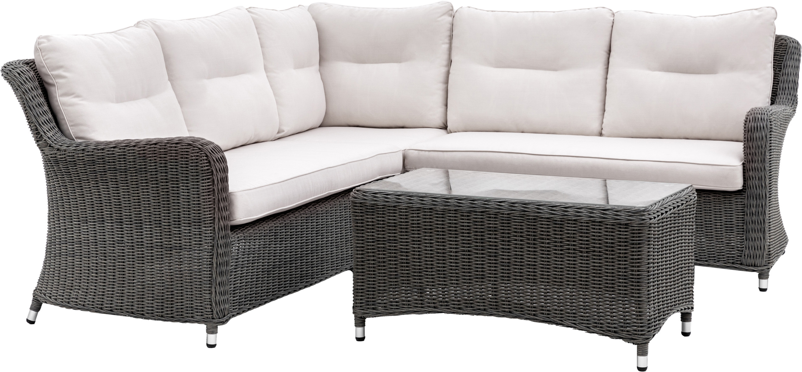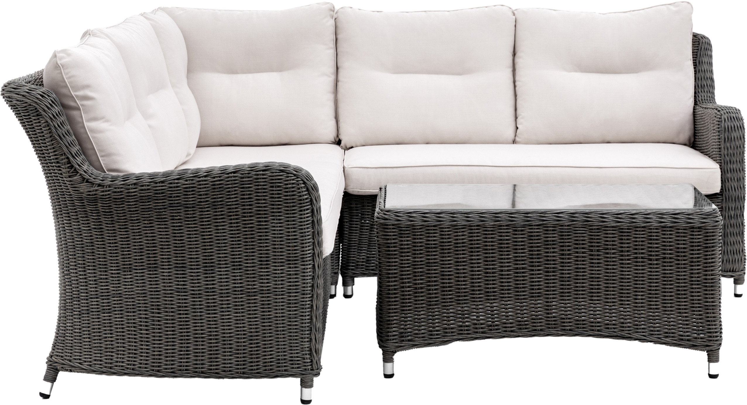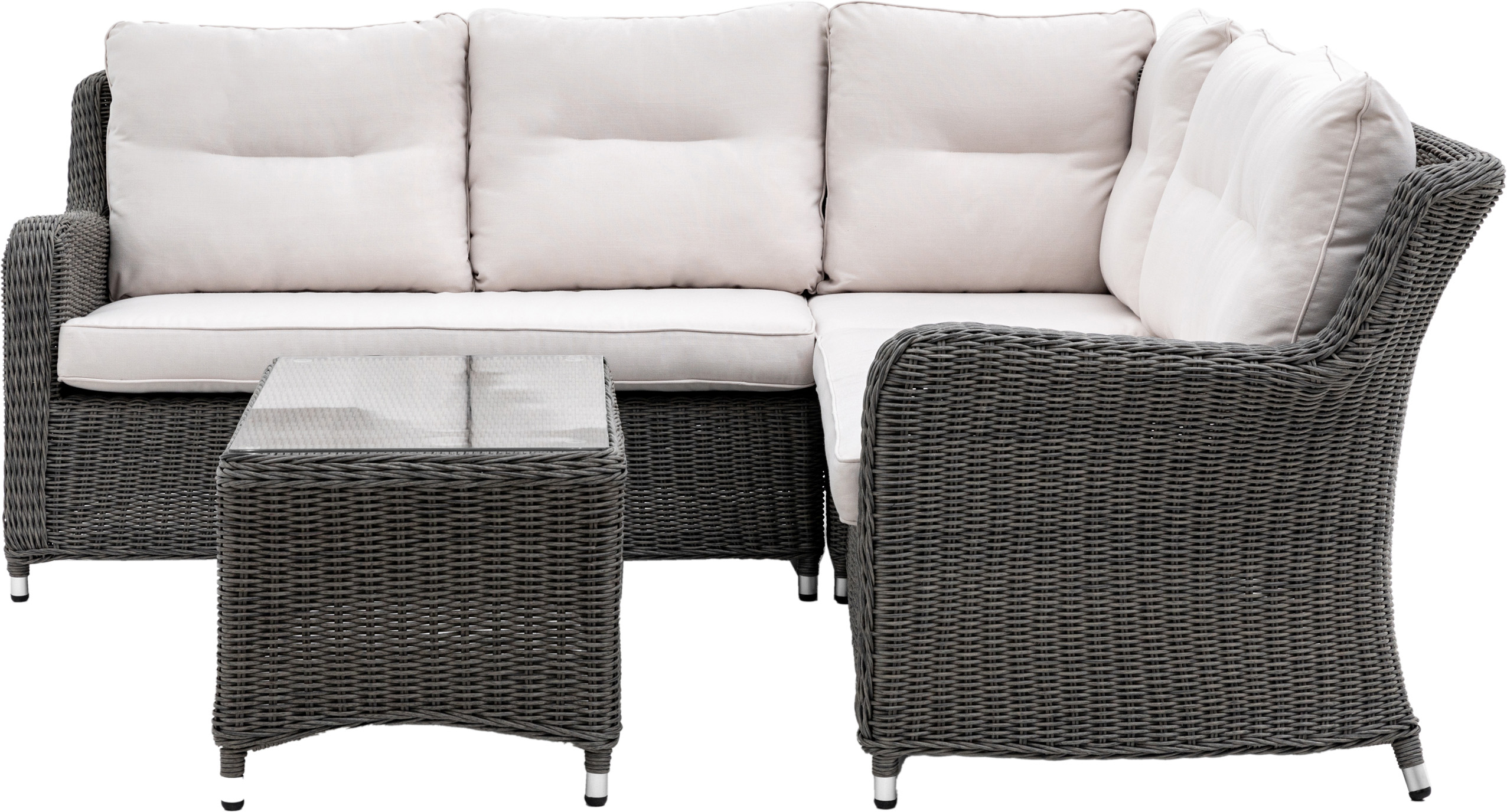 Gallery Direct Windsor Corner Lounge Set The Gallery Direct Windsor Corner Lounge Set features a comfortable corner sofa and a matching coffee table, all crafted with a blend of wicker and plush cushions. The neutral color palette complements any Outdoor decor, perfect for relaxing with family or entertaining guests, this set adds a touch of sophistication to your Outdoor living space.