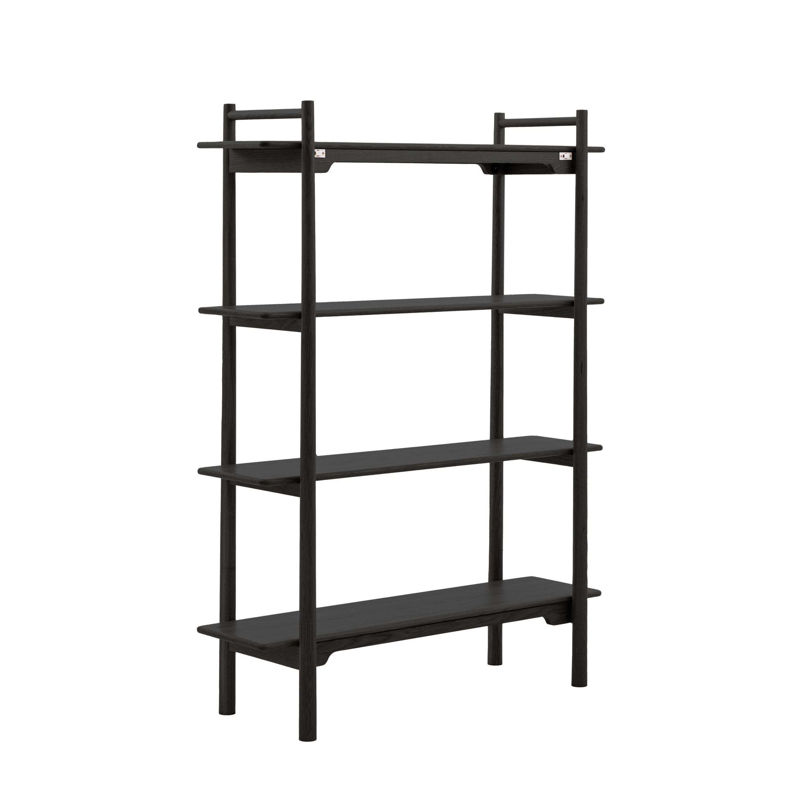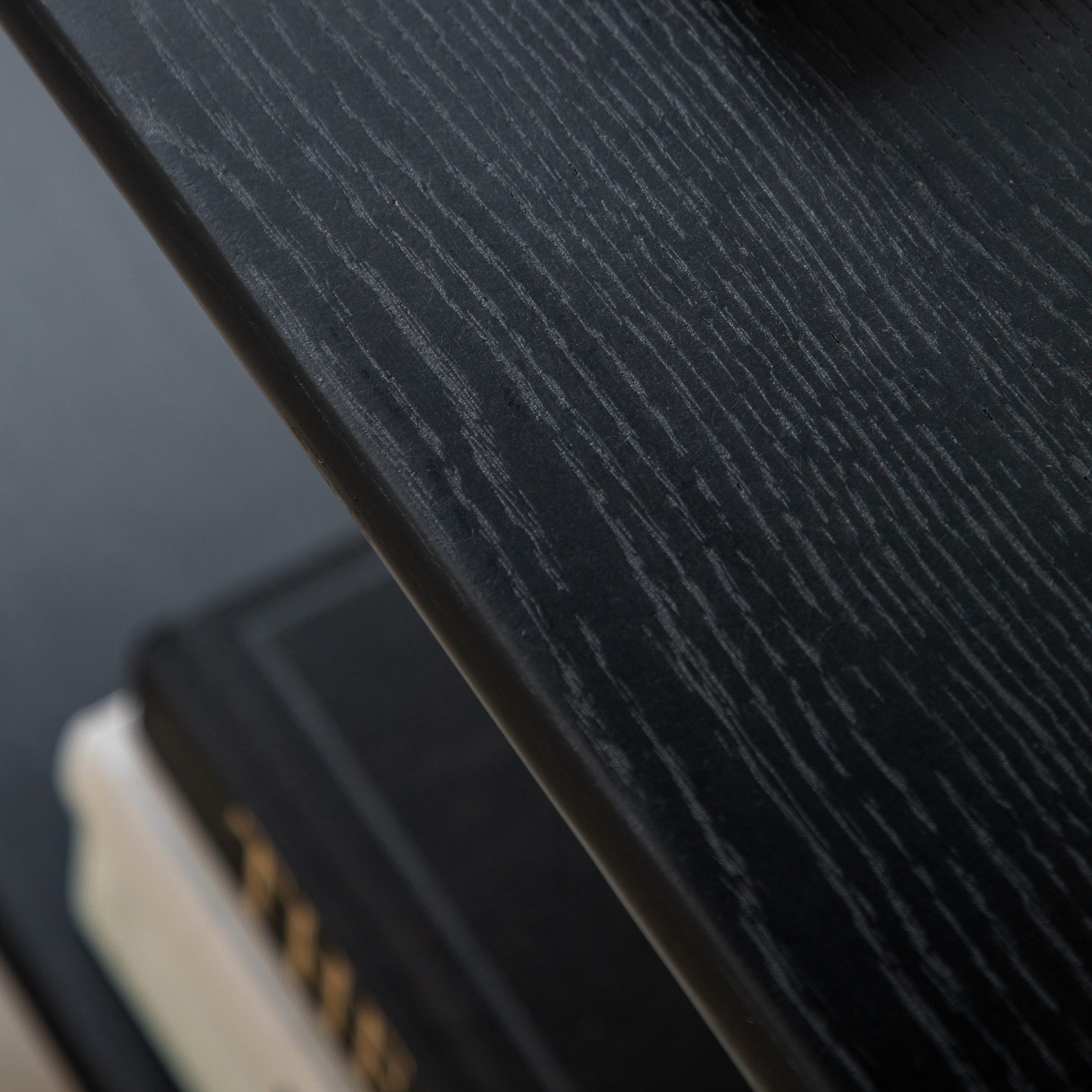 With the essence of Nordic style this display unit is the perfect place for books, ornaments and treasured items. The tall 4 shelf unit features black oak veneered shelves on a sturdy solid black oak frame, with stylish tapered lags this unit is stand out stylish.