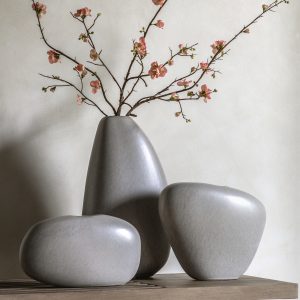 Beautifully capturing the natural shape and colouring of a beach pebble, this vase is a stunning contemporary addition to any space. Coordinating vases available, and all 3 look lovely placed together.