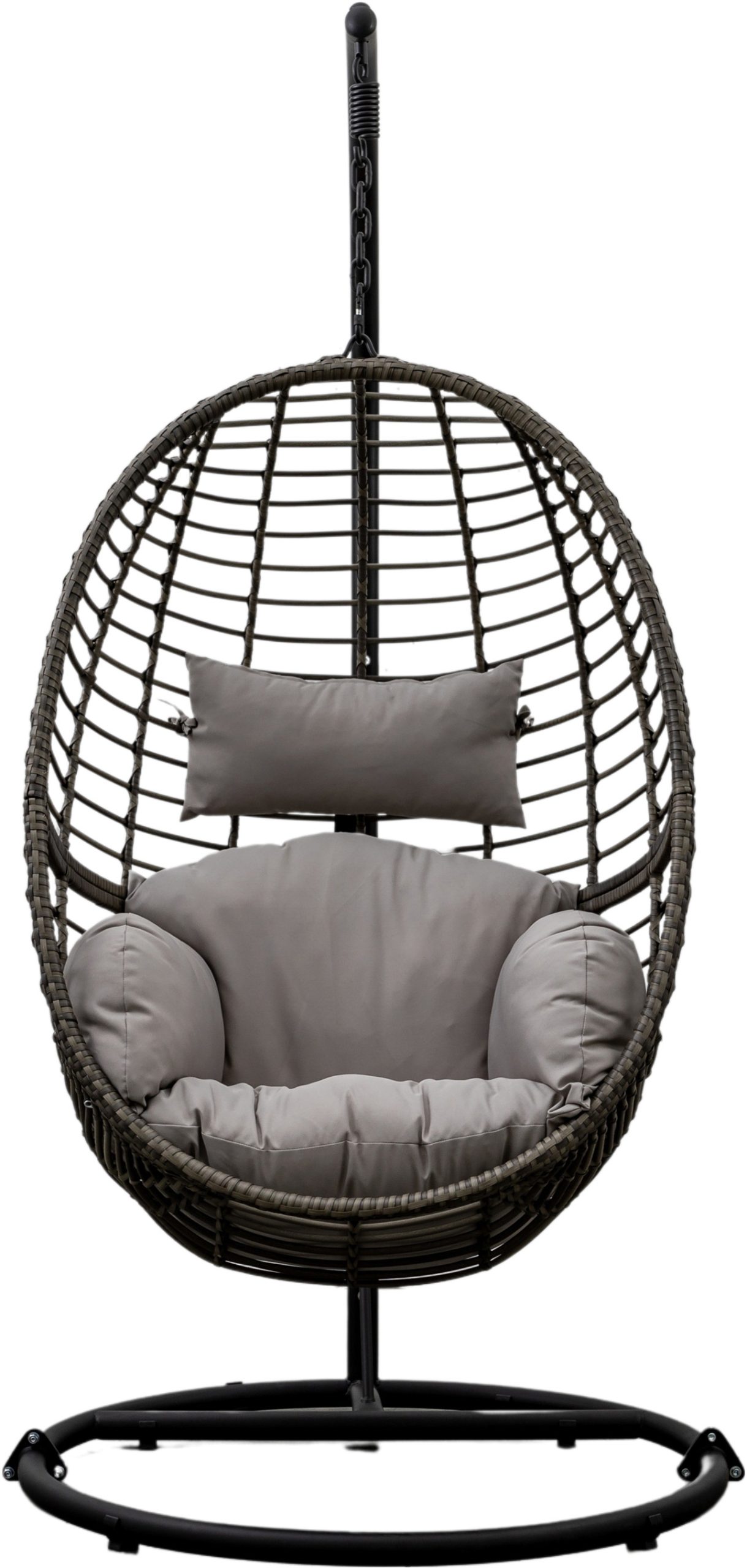 Relax in style in this incredibly comfortable hanging chair. Crafted from rattan with luxuriously deep showerproof cushions, it is perfect for balconies, patios and poolside spaces, and even looks great indoors. The frame, which can be dis-assembled for easier storage over winter, is power coated steel. A 2-seater version is also available.