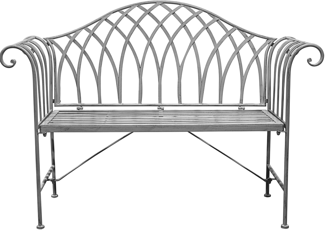 Featuring unique rounded metal arms this stylish metal bench creates a comfortable casual seating area in any Outdoor living space, in a distressed, painted grey finish
