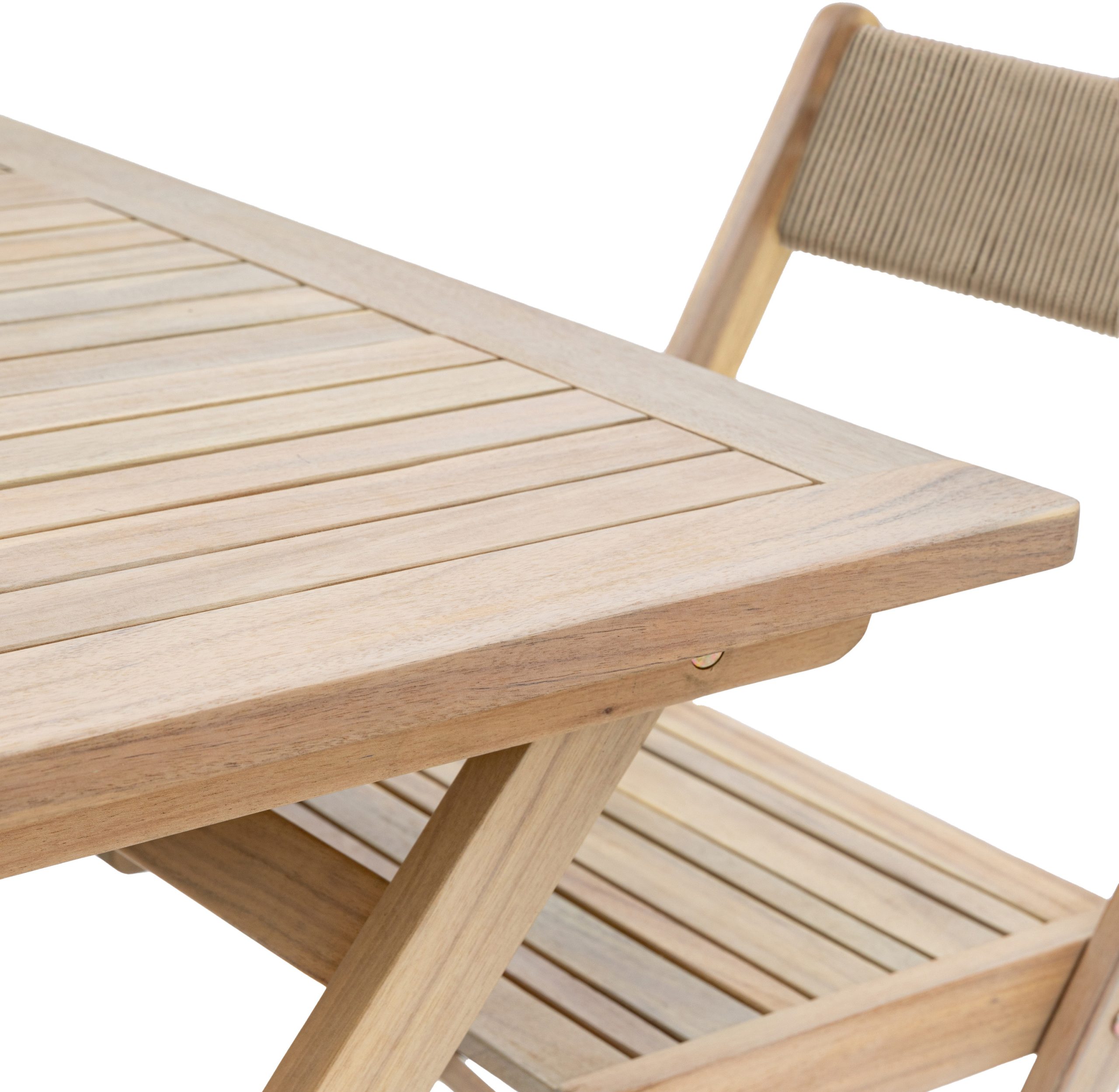 Gallery Outdoor Lindos Folding Dining Set Combining practicality and style this dining set folds away for easy storage or transportation. This elegantly simple set is made with FSC Acacia wood and comes complete with the folding slatted top dining table and folding 4 chairs. Additional coordinating chairs are available separately.