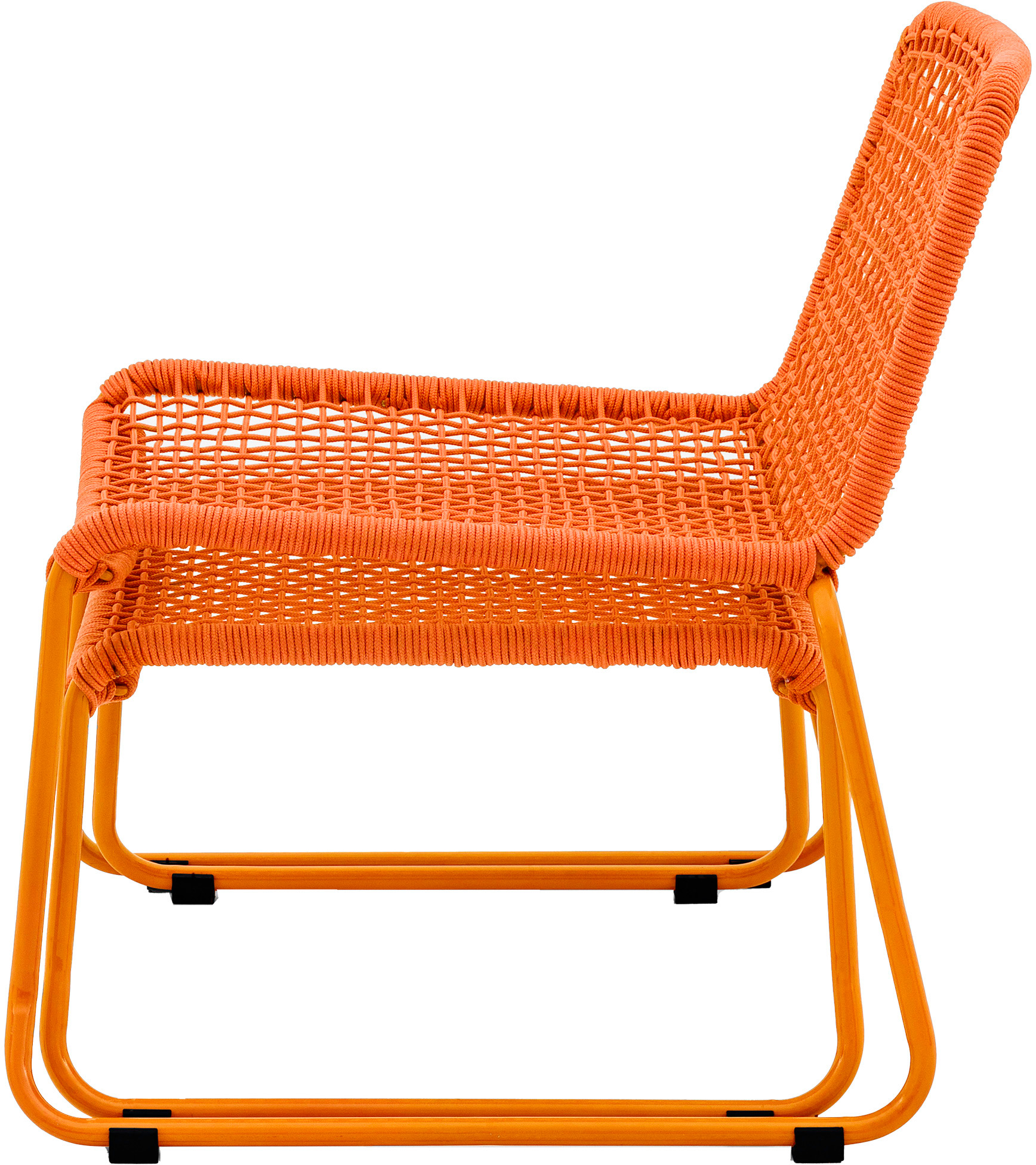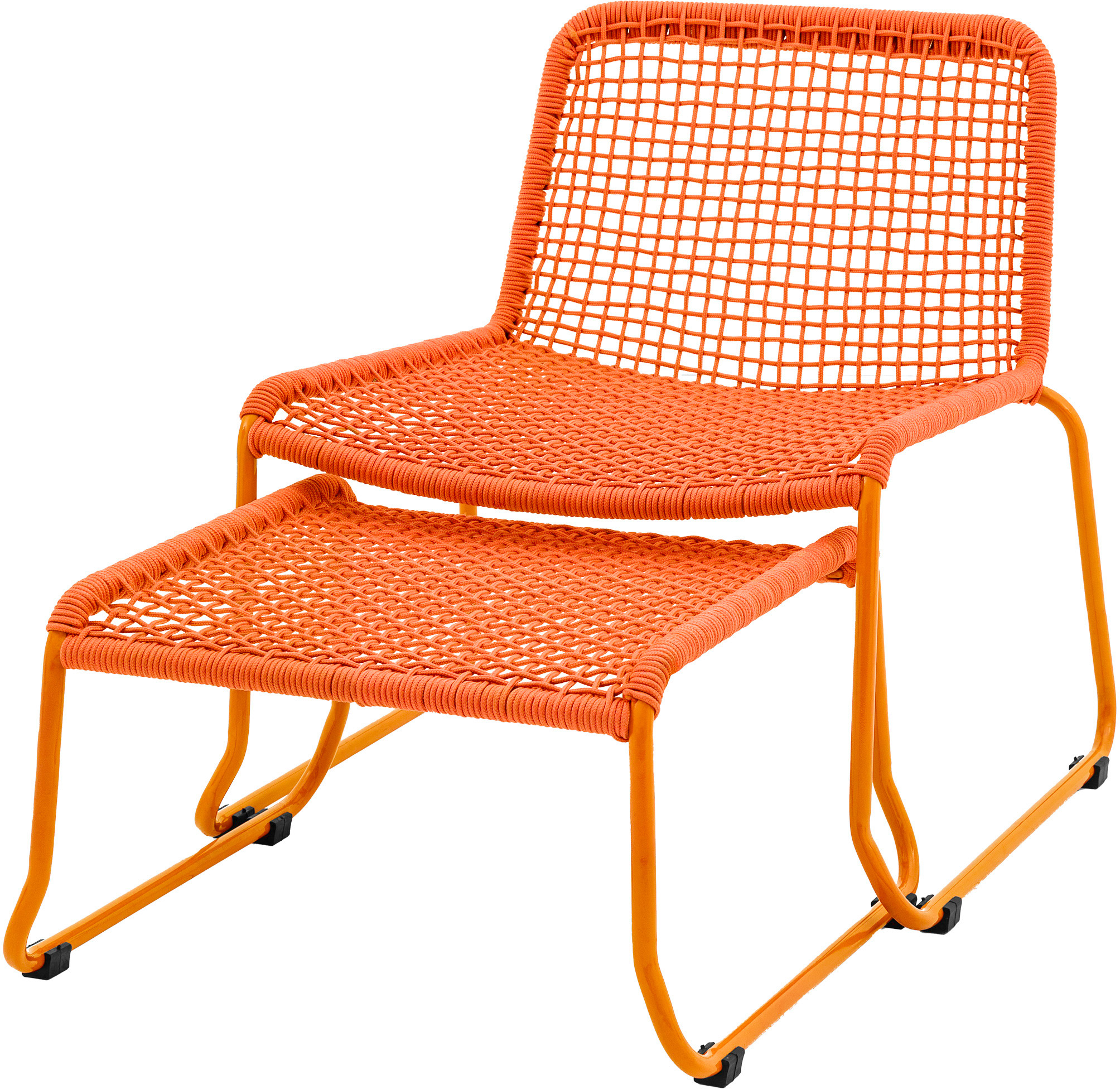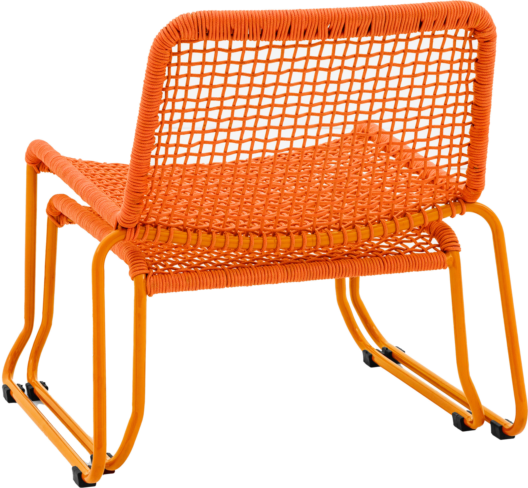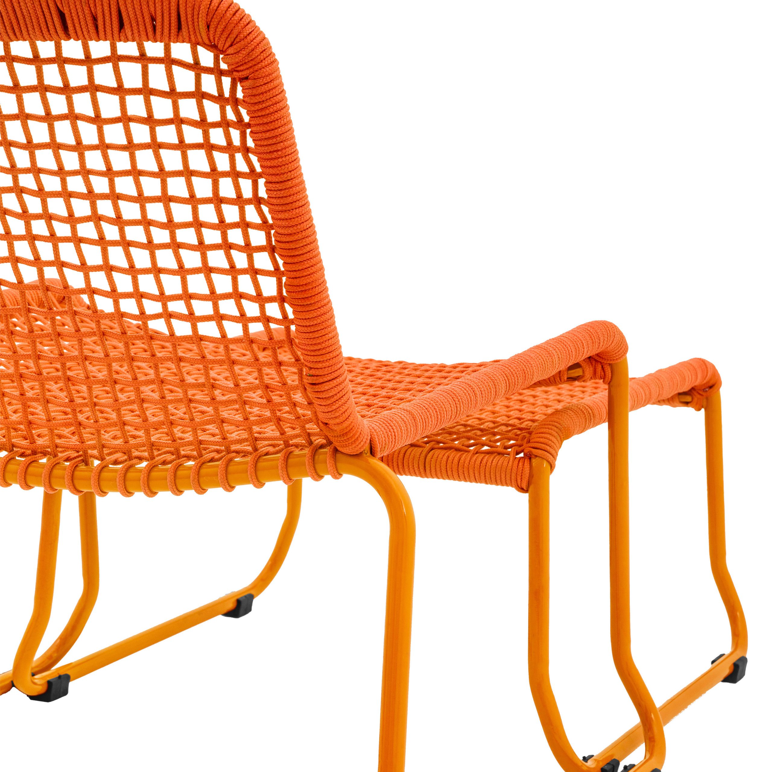 Add a pop of colour and the wow factor to your Outdoor space this summer. Sit back and relax in this comfortable bold orange lounger chair and footstool, made with a steel frame with woven Outdoor rope seat and back for extra comfort.