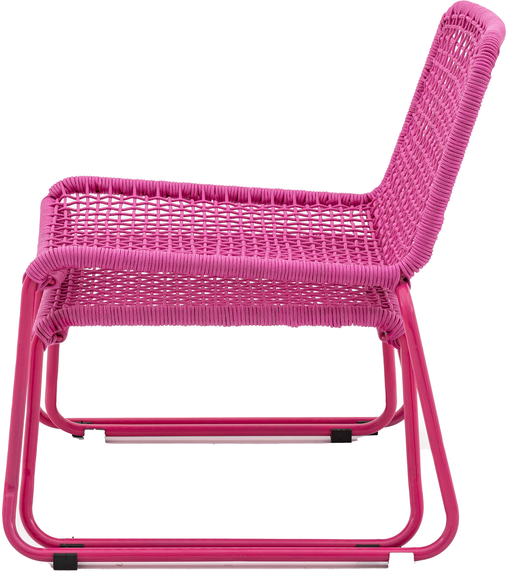 Add a pop of colour and the wow factor to your Outdoor space this summer. Sit back and relax in this comfortable vibrant pink lounger chair and footstool, made with a steel frame with woven Outdoor rope seat and back for extra comfort.