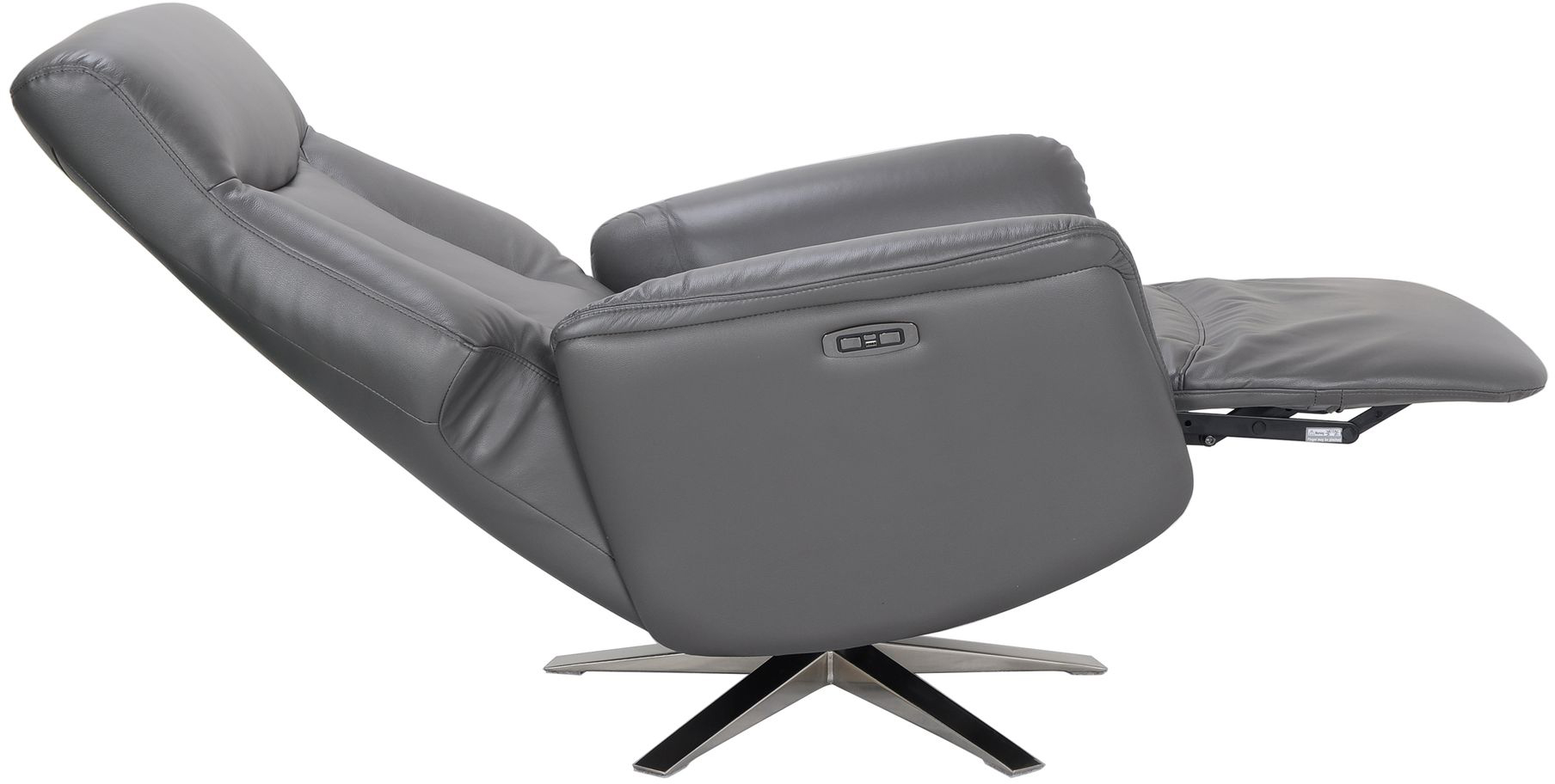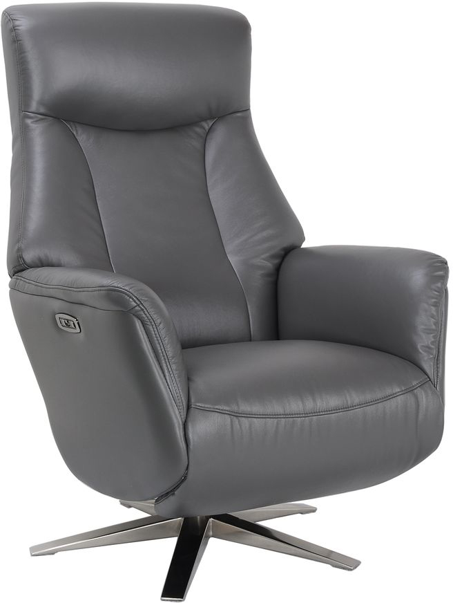 Global Furniture Alliance Houston Chair in Iron Leather Relax and unwind with the push of a button in the Houston power swivel recliner.