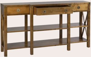 Laura Ashley Balmoral 3 Drawer Triple Console Table in Honey The Balmoral Collection embodies timeless elegance with its rich, dark wood tones and traditional design elements. Crafted from high-quality materials, this collection offers a wide variety of furniture pieces, from storage solutions like bookcases, sideboards, and chests, to functional pieces such as coffee tables and dining chairs. Distinctive features like brass accents and sturdy craftsmanship provide a luxurious yet practical feel, making it perfect for both classic and contemporary homes. Whether furnishing a living room, dining area, or study, the Balmoral Collection delivers warmth, sophistication, and a cohesive aesthetic throughout.