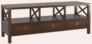 Laura Ashley Balmoral Wide TV Unit in Chestnut The Balmoral Collection embodies timeless elegance with its rich, dark wood tones and traditional design elements. Crafted from high-quality materials, this collection offers a wide variety of furniture pieces, from storage solutions like bookcases, sideboards, and chests, to functional pieces such as coffee tables and dining chairs. Distinctive features like brass accents and sturdy craftsmanship provide a luxurious yet practical feel, making it perfect for both classic and contemporary homes. Whether furnishing a living room, dining area, or study, the Balmoral Collection delivers warmth, sophistication, and a cohesive aesthetic throughout.